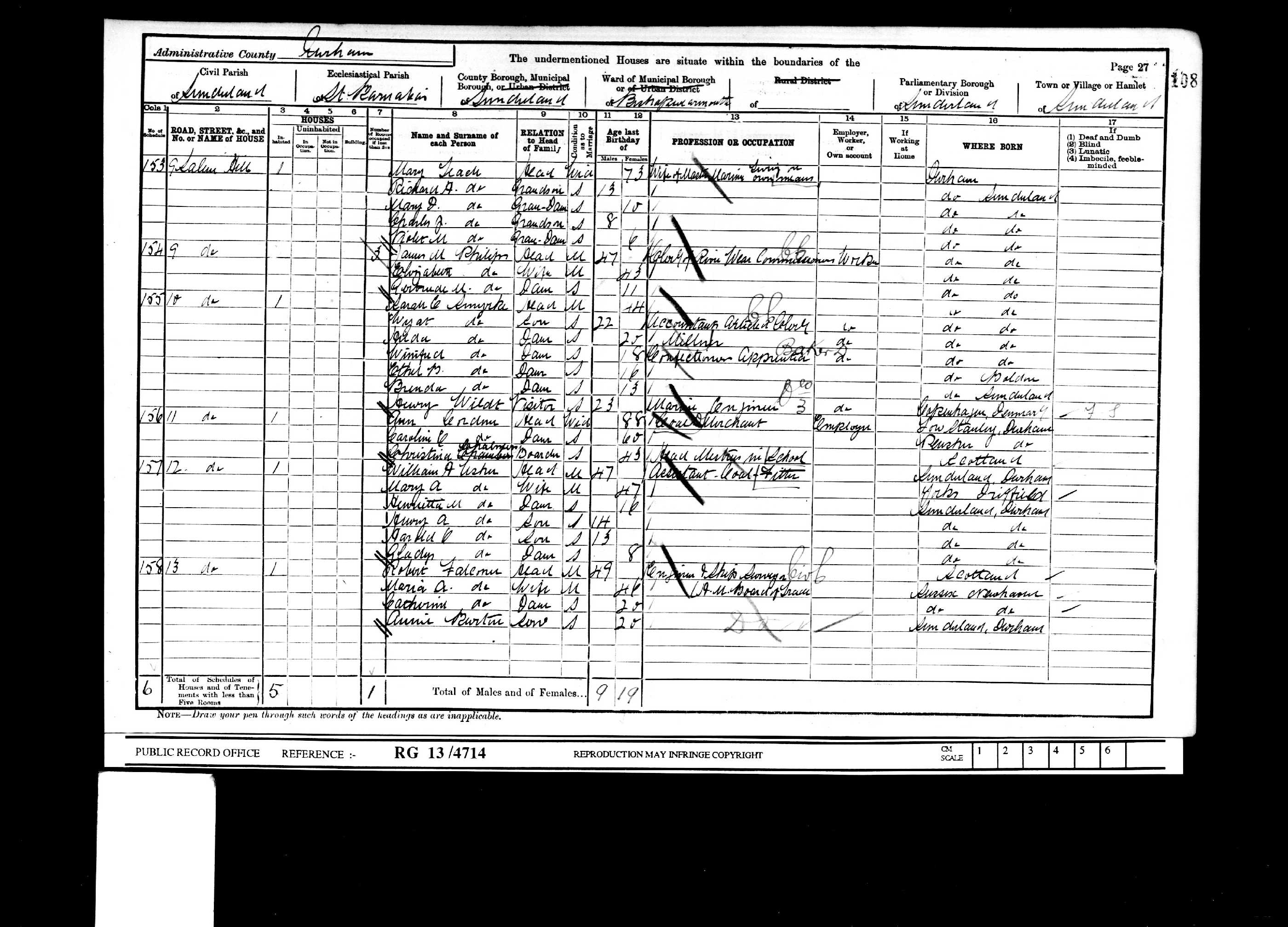 - [S159] 1881 Census Ryhope, FHL Film 1342202 PRO Ref RG11 Piece 4998 Folio 86 Page 51.