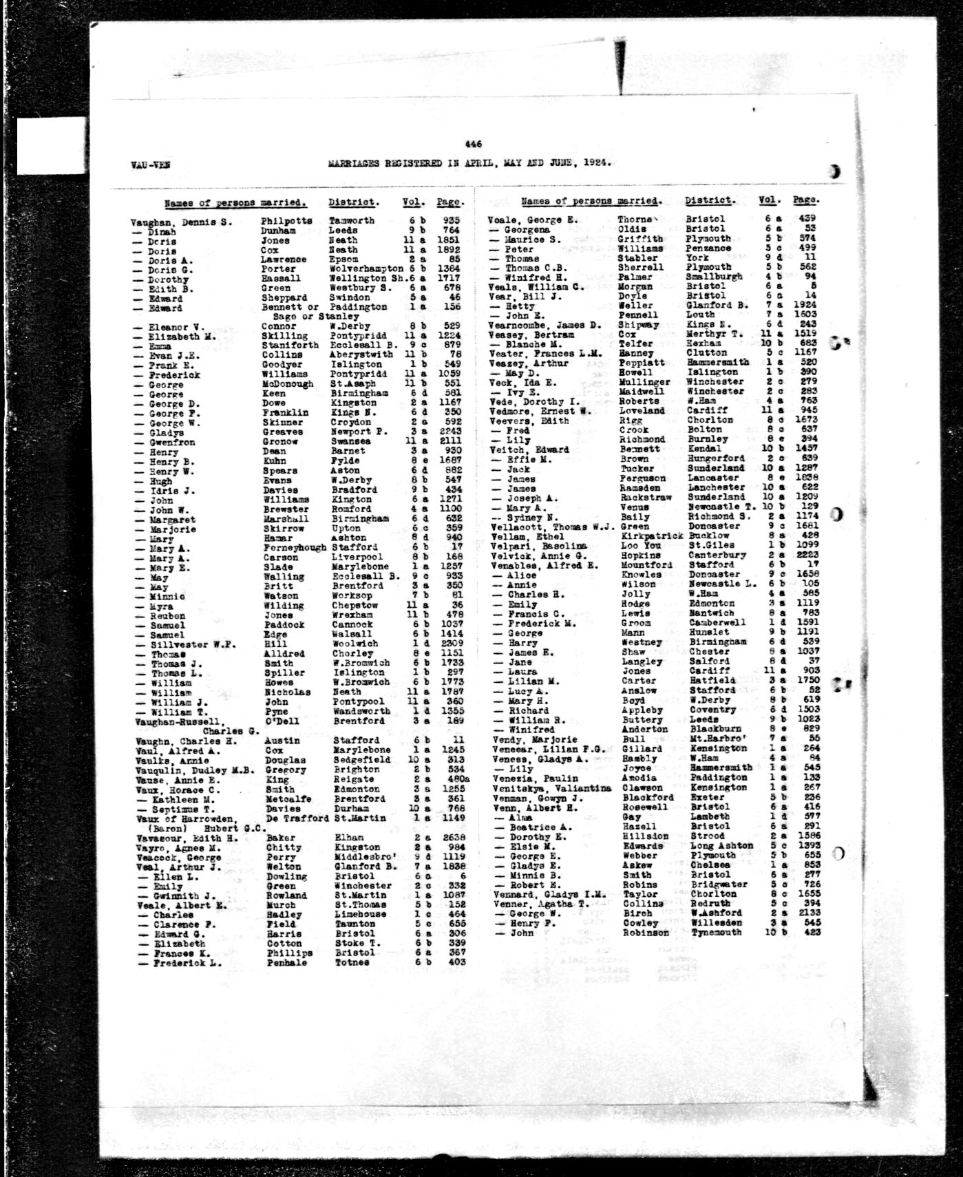| Marriage* | Ju Qu 1924 | Blanche Marion Veasey married Peter Telfer, son of John Telfer and Mary A (?), Ju Qu 1924 at Hexham, Northumberland, England.2 |