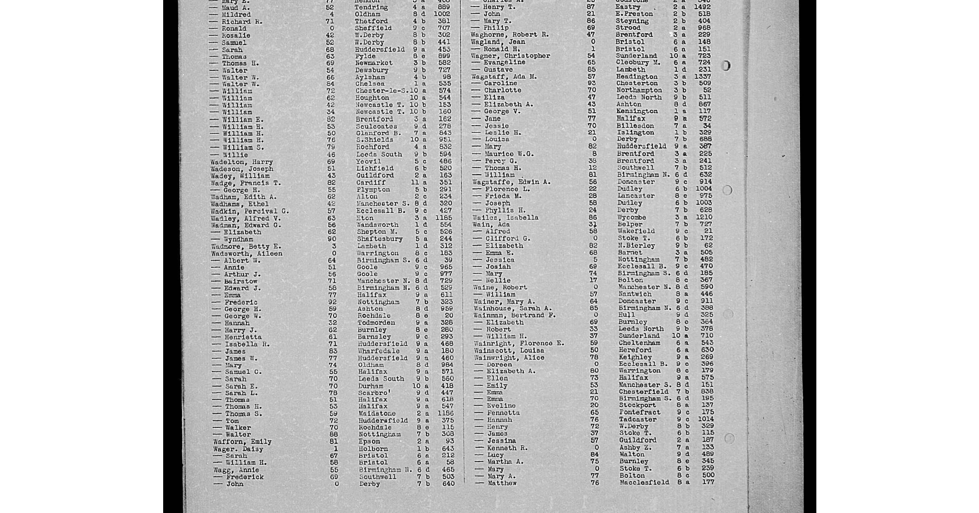 | Death* | 1953 | She died in 1953 at Leicester, Leicestershire, England; Jan, Feb, Mar Qu.10 |