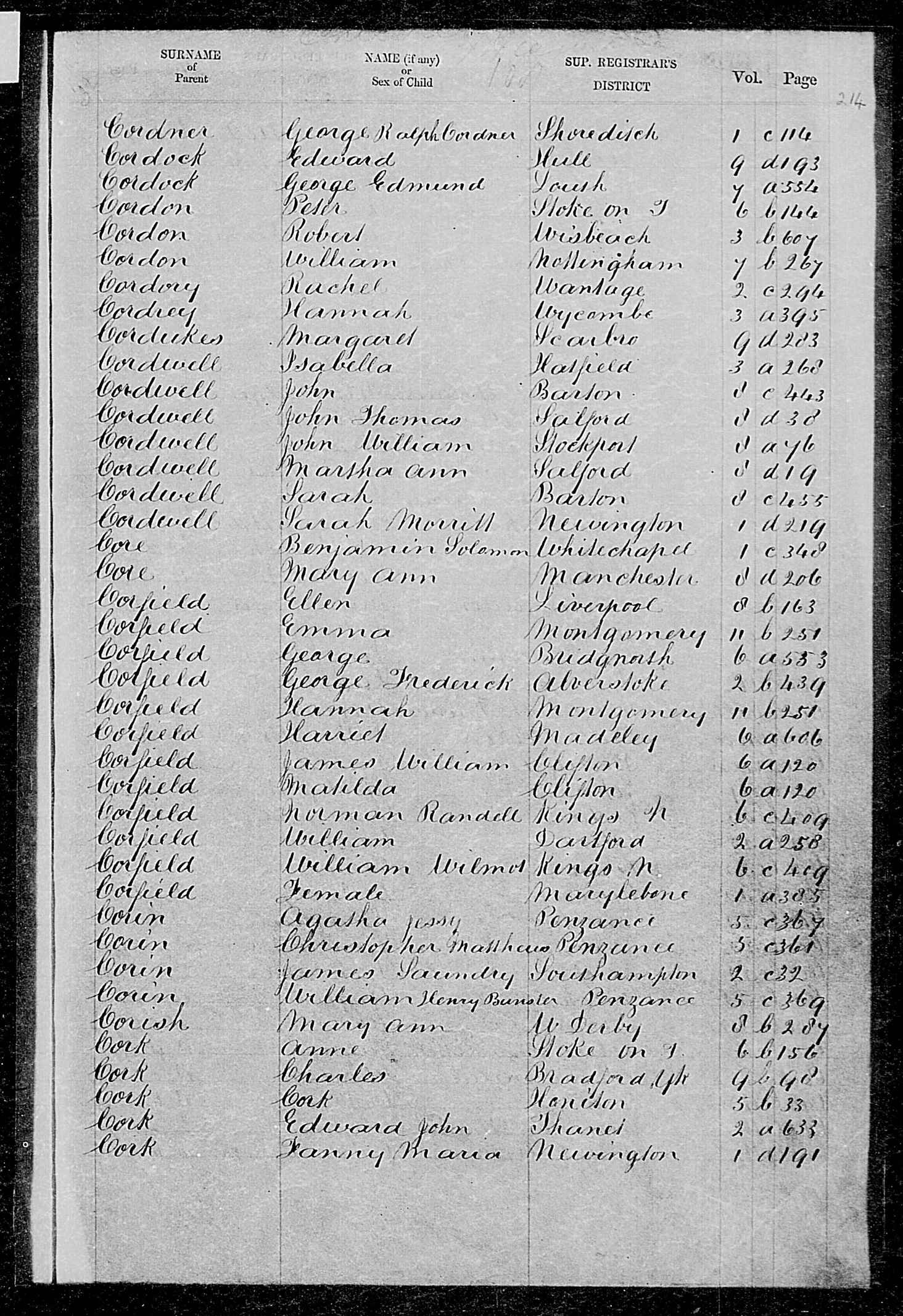 - [S103] LDS Bucks, Cordner, Horatio Alexander (Male) Christ 30 Oct 1836 (son of) Ralph Frederick August Cordner / Mary Anne at Colnbrook