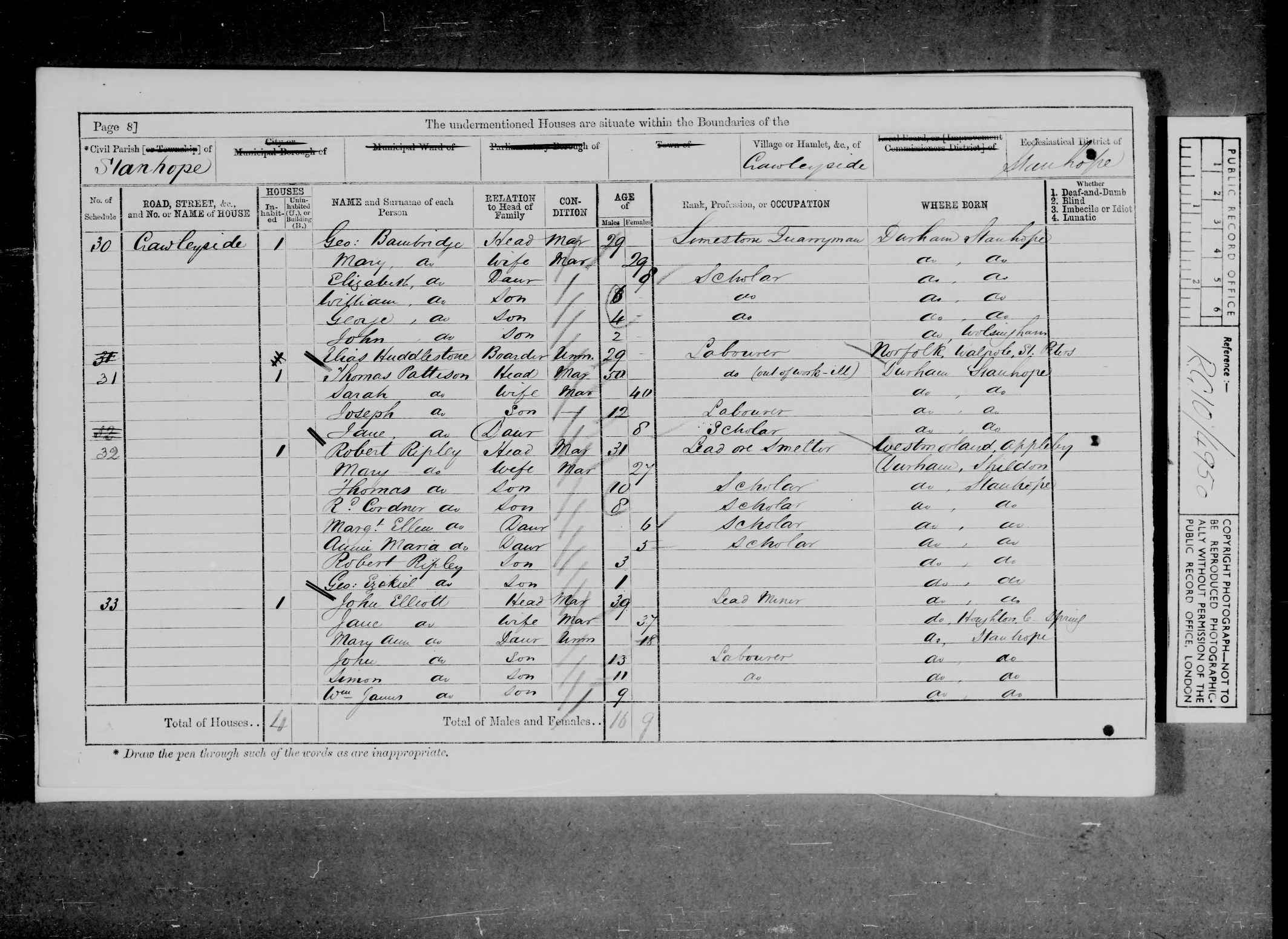 © brightsolid online publishing ltd - [S514] 1871 Census Stanhope, 1871 census transcription details for: Stanhope.