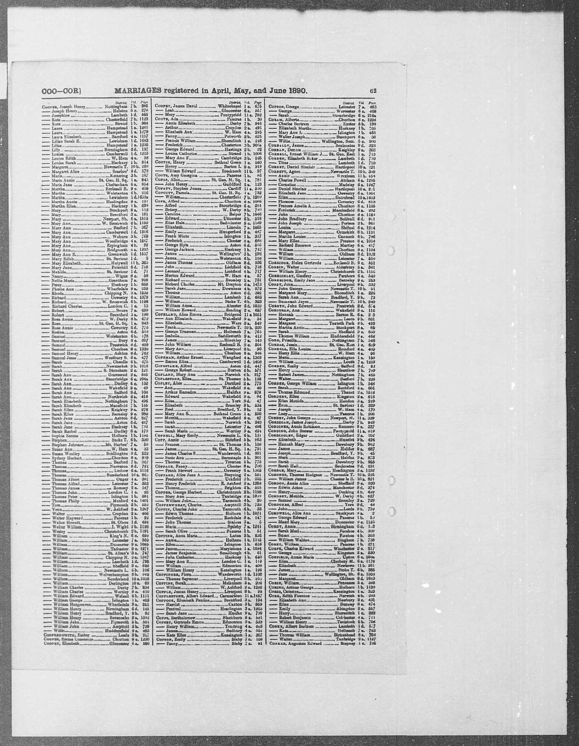 Durham Marriages. - [S111] GRO Weardale, Record Transcription: