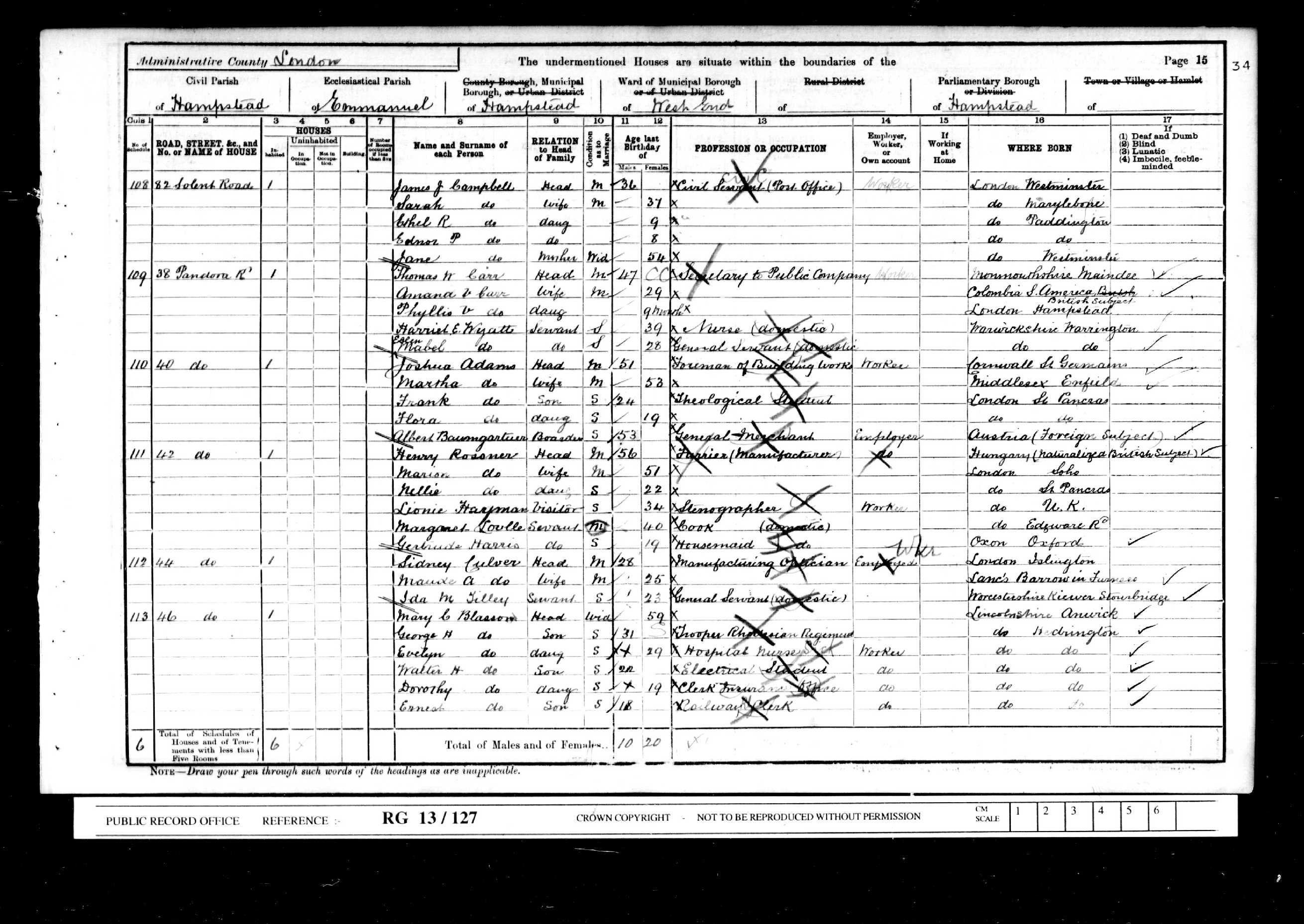 Transcriptions © brightsolid online publishing ltd - [S591] 1901 Census London, 1901 census transcription details for: 44, Pandora Road, Hampstead