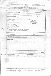 | Birth* | 12 August 1908 | John William Cordner was born on 12 August 1908 at 15 Woodbine Terrace, Gateshead, Co Durham, England; (sub-district & district Gateshead entry 67) . John William Boy Frank Eleanor Joiner informant 22/8/1908 Cordner Cordner (Journeyman) father formerly Davison.1 Registration District Gateshead 1908 Birth in the Sub=District of Gateshead in the County of Gateshead No 67 Twelfth August 1908 John Boy Frank Eleanor Joiner Frank Twenty Thomas 15 Woodbine Terrace William Cordner Cordner (Journeyman) Cordner Second Lumsden U.D. formerly Father August Registrar Davison 15 Woodbine 1908 Terrace Gateshead Certified as a true copy of entry 67 in the register book 314 |