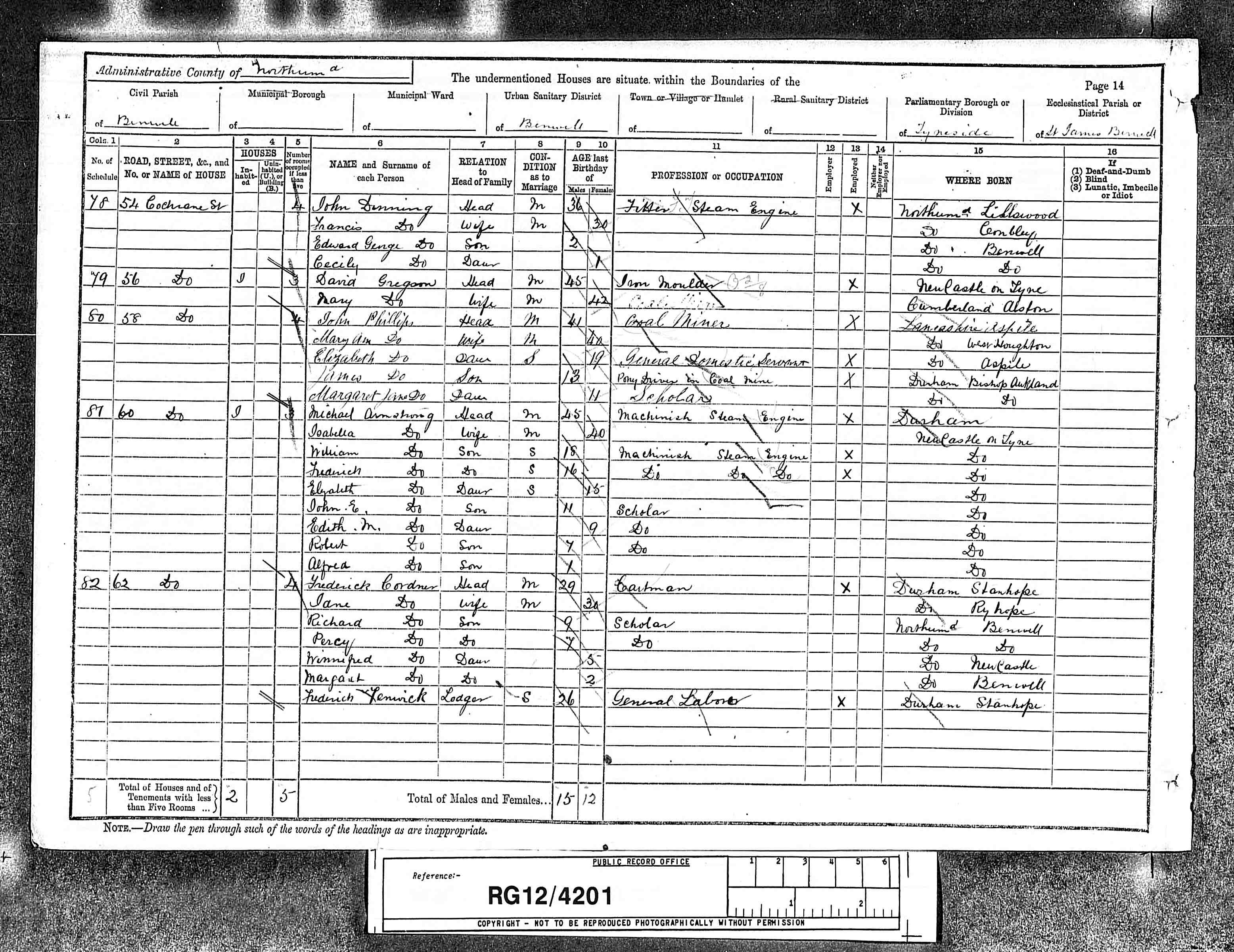 | Birth* | circa March 1720 | Richard Renny was born circa March 1720 at Gateshead. |