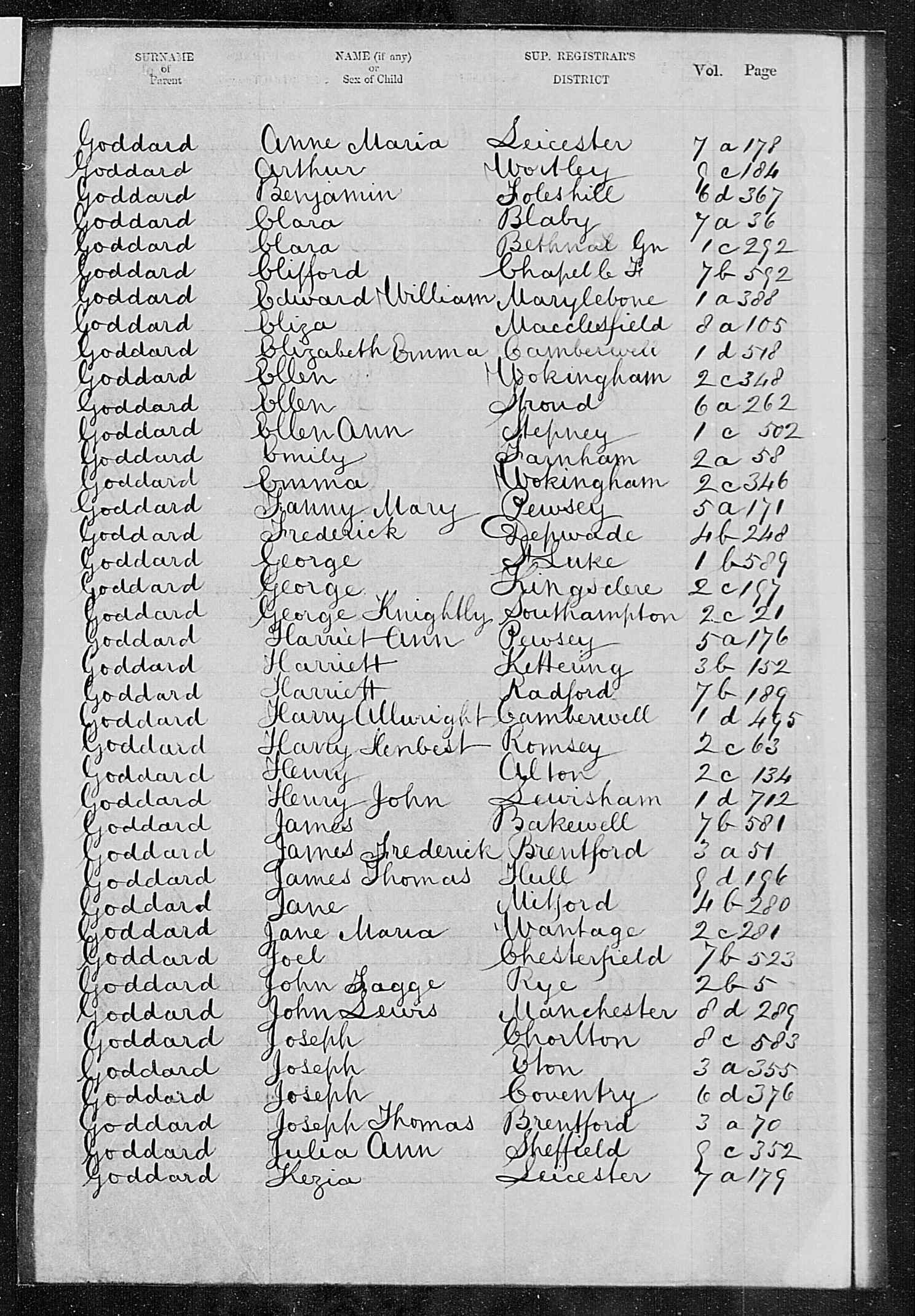 Father's Name: Thomas Goddard