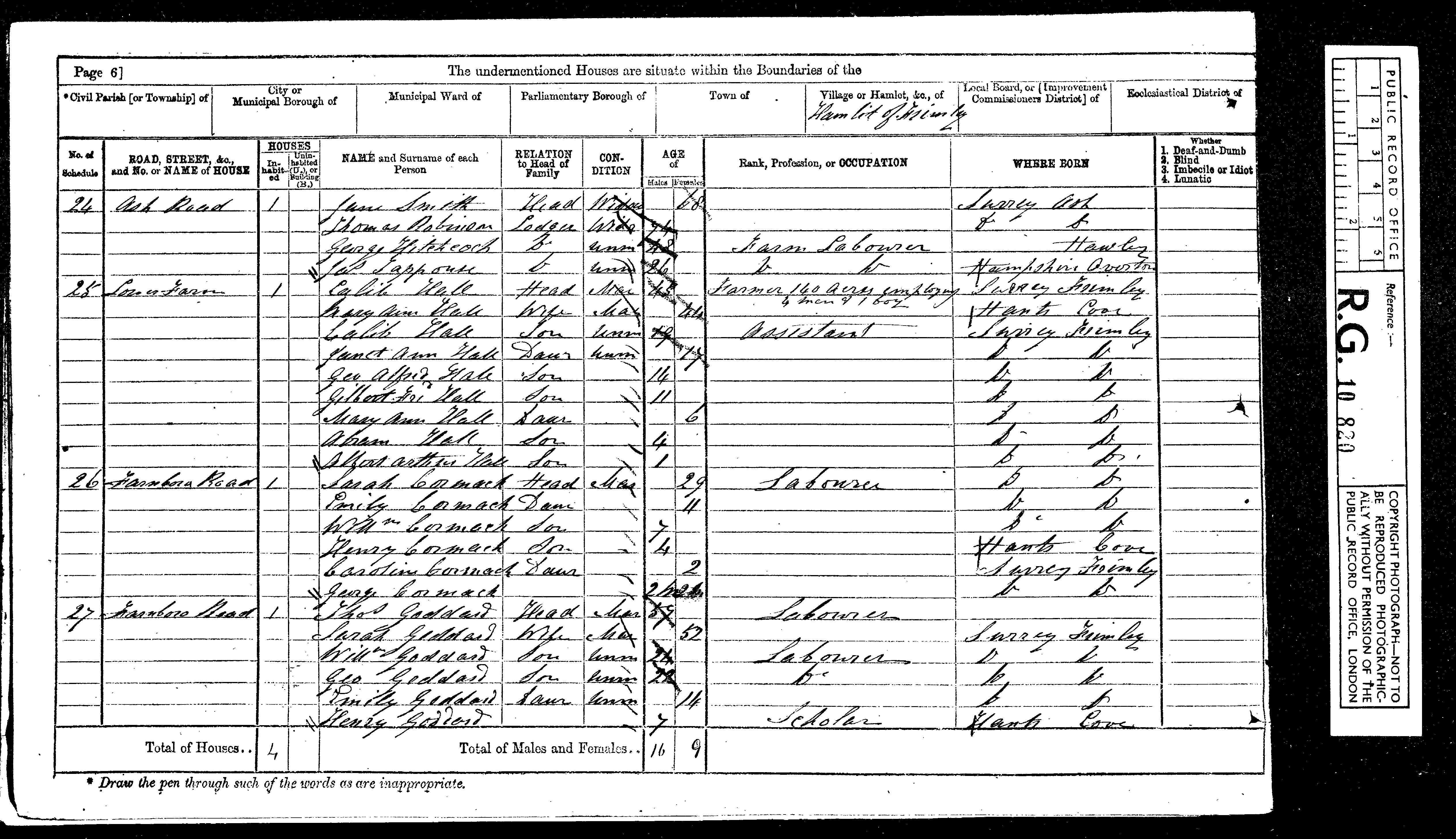 Henry Goddard Son Single Male 18 1863 Ag Lab Frimley, Surrey, England