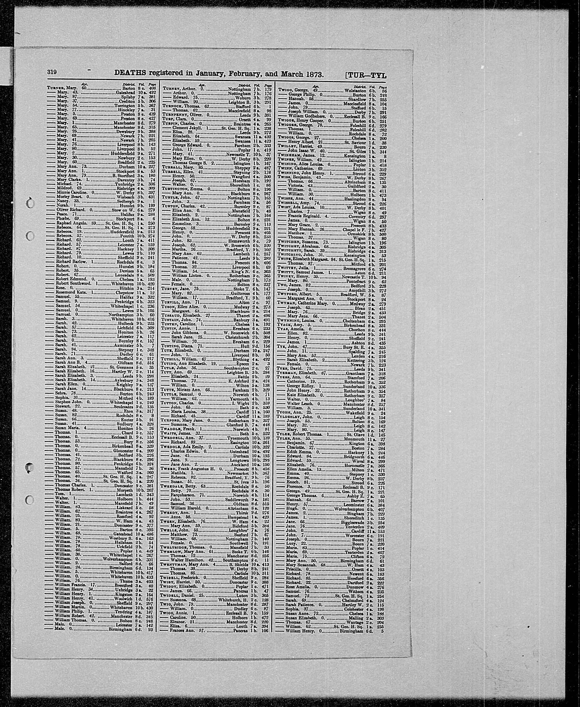 | Death* | 1873 | He died in 1873 at Easington, Co Durham, England; Jan, Feb, Mar Qu.6 |