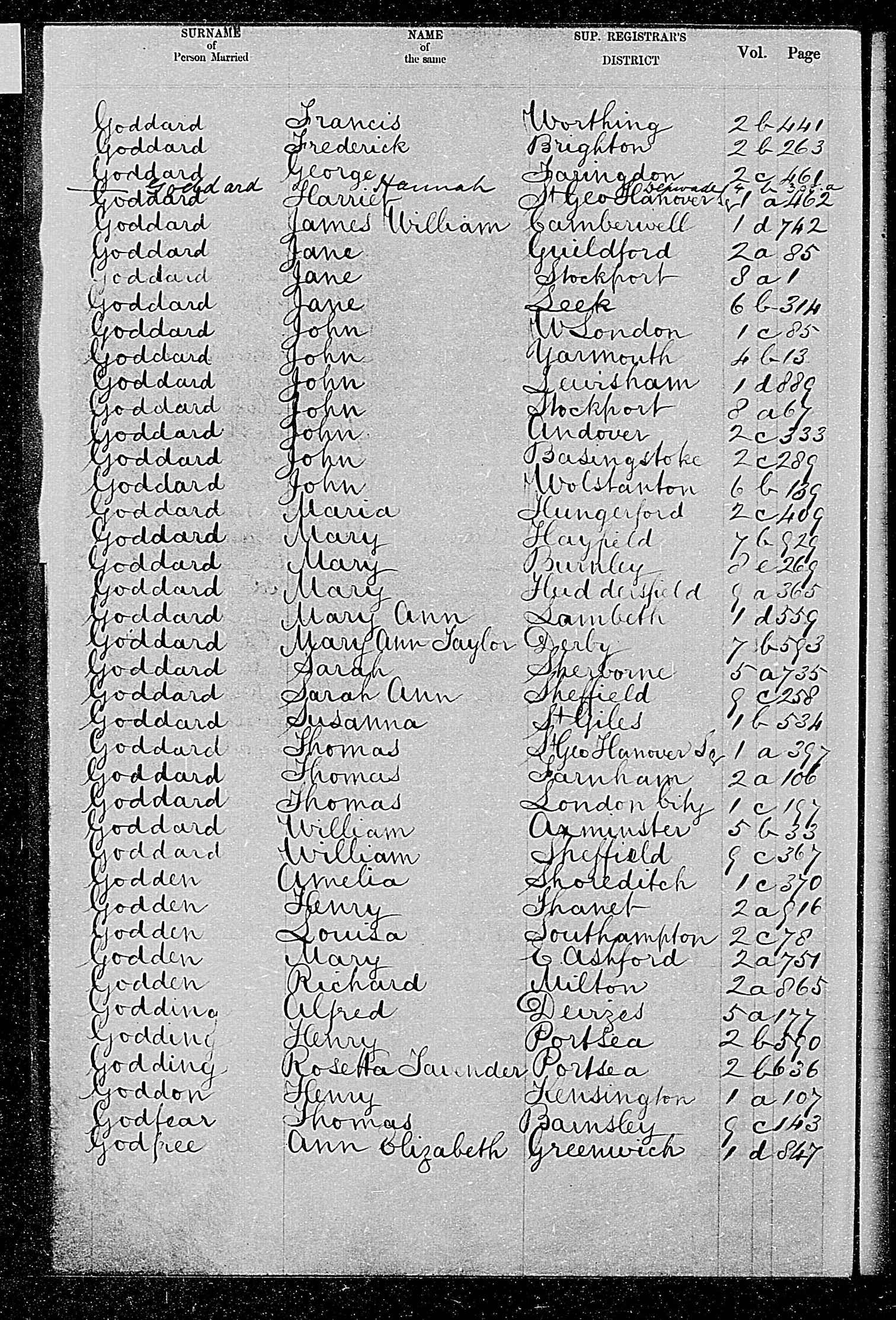 - [S647] Yately Par Reg, "England Births and Christenings, 1538-1975," database, FamilySearch (https://familysearch.org/ark:/61903/1:1:JSP3-4VD : 6 December 2014, Thomas Goddard, 11 Jun 1820); citing Yateley, Hampshire, England, index based upon data collected by the Genealogical Society of Utah, Salt Lake City; FHL microfilm 1,041,225.