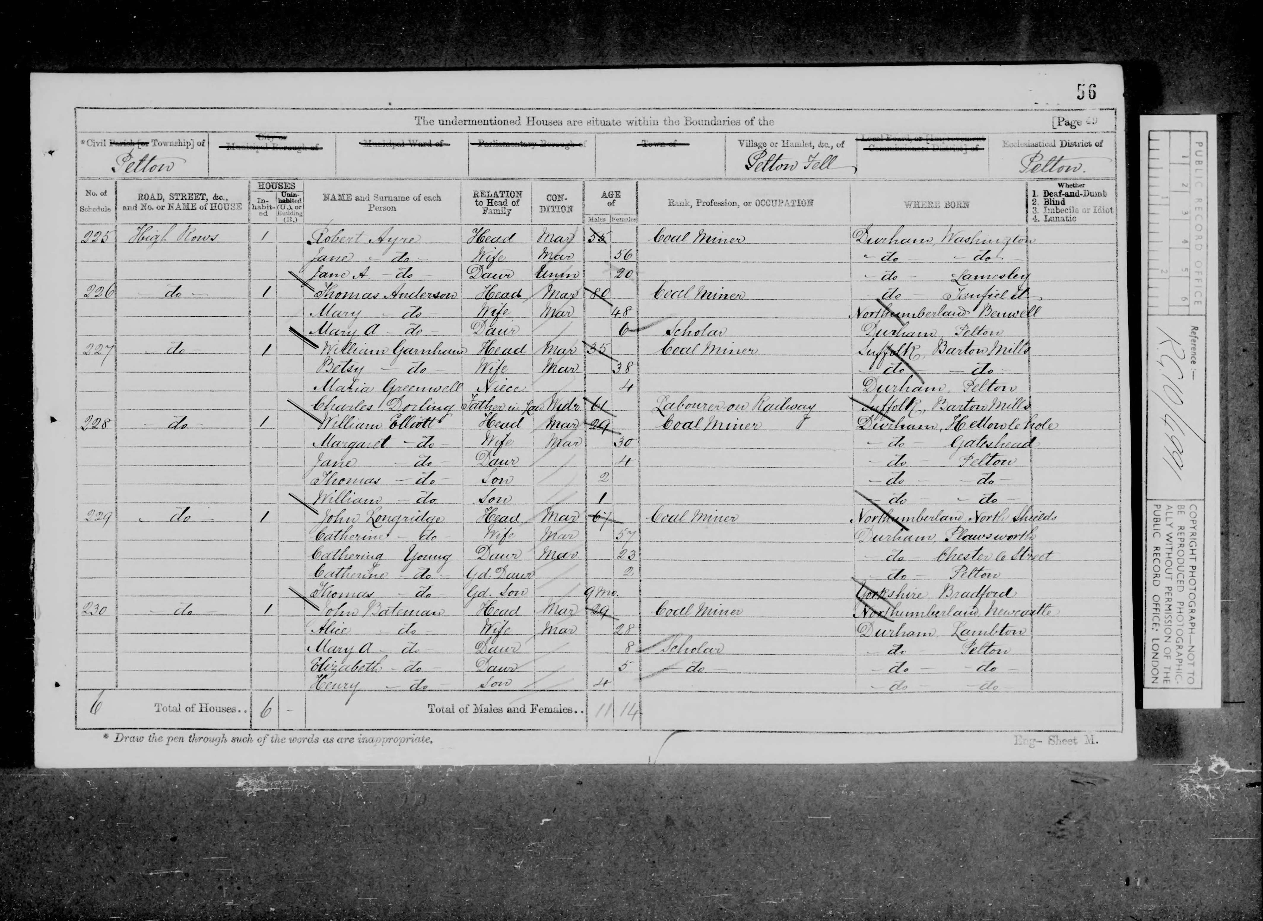 - [S504] 1871 Census Chester le Street, Record Transcription:
