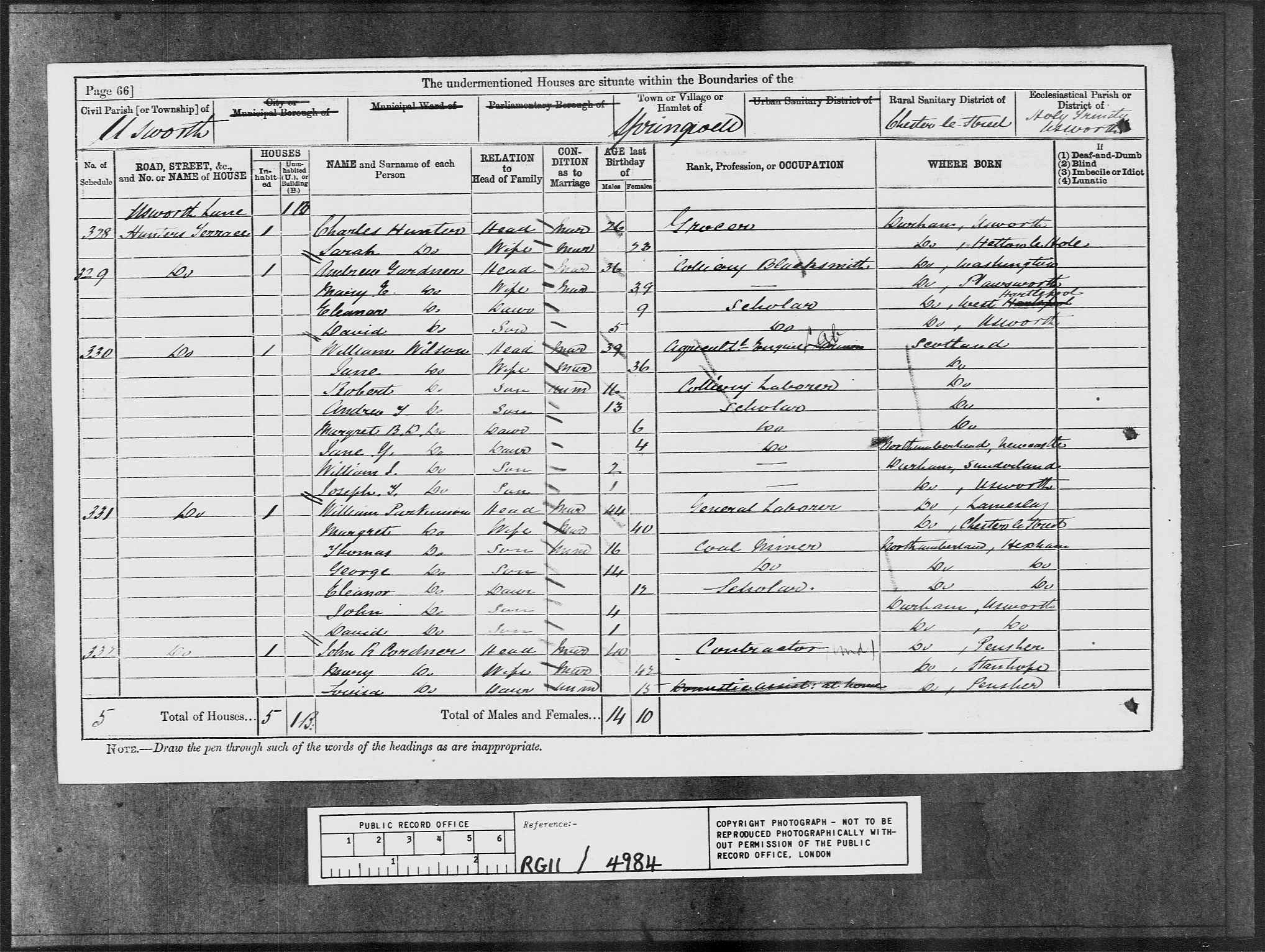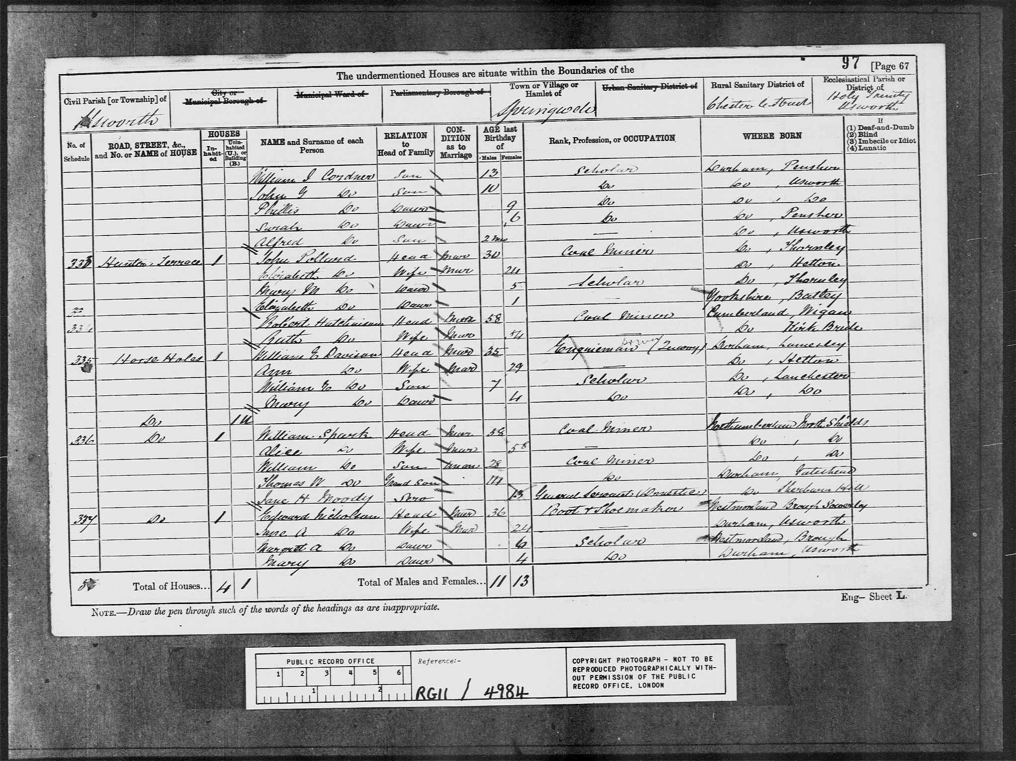 SCOTT, Mary Head Widow F 53 1838 Penshaw, County Durham