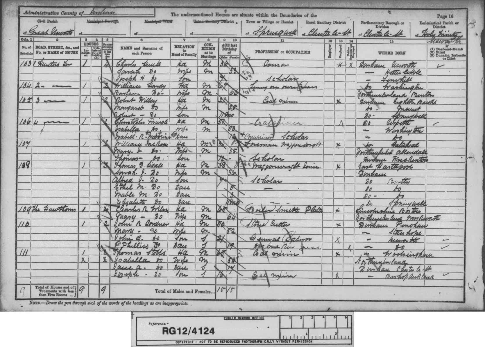 SCOTT, Wm C Great Nephew Single M 18 1863 Clerk Seaham, Durham