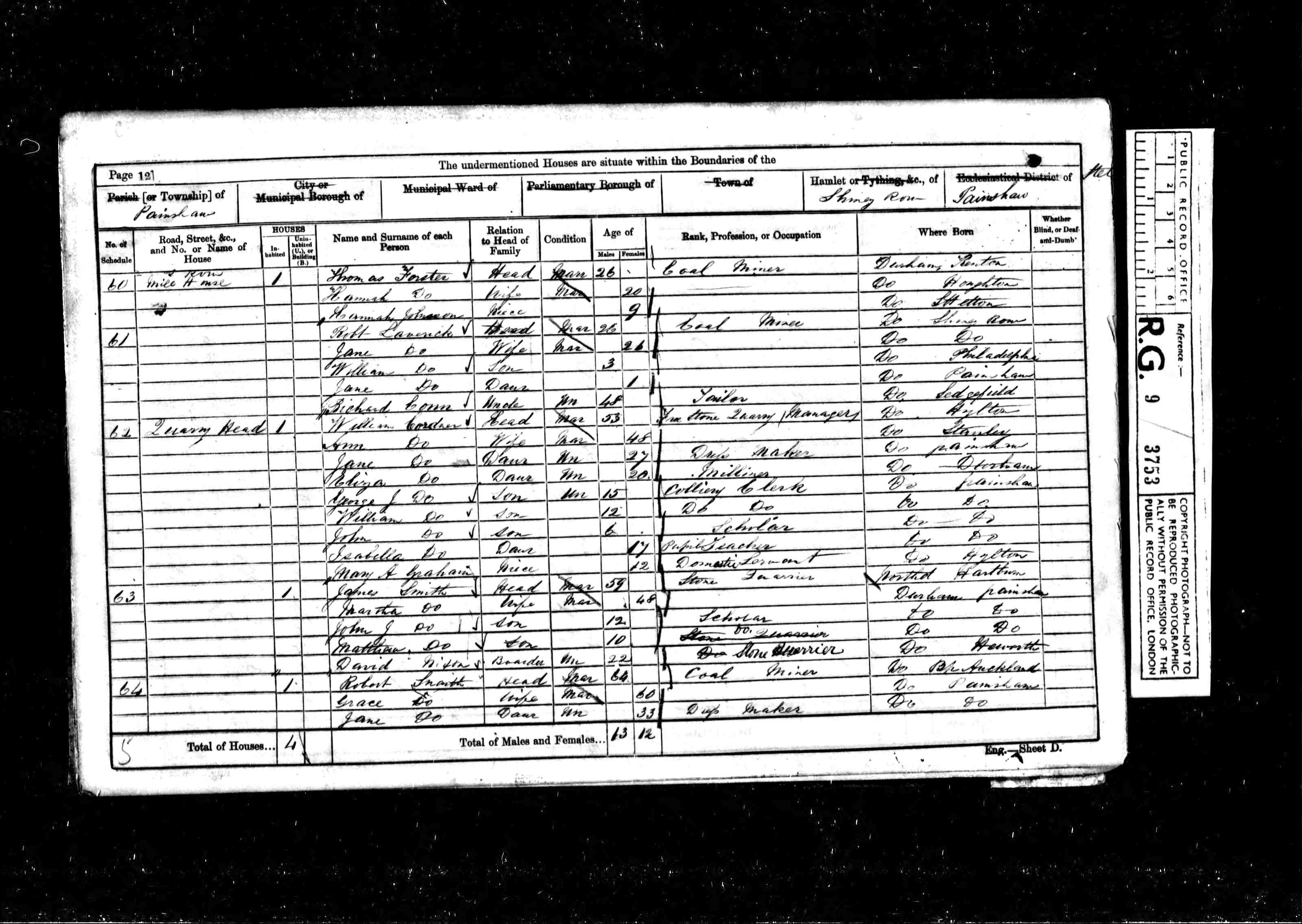 Collections from Great Britain, England - [S8] 1851 Census Houghton le Spring, 1851 Penshaw HO 107 2393 1-201 Sched177 Quarryhead.