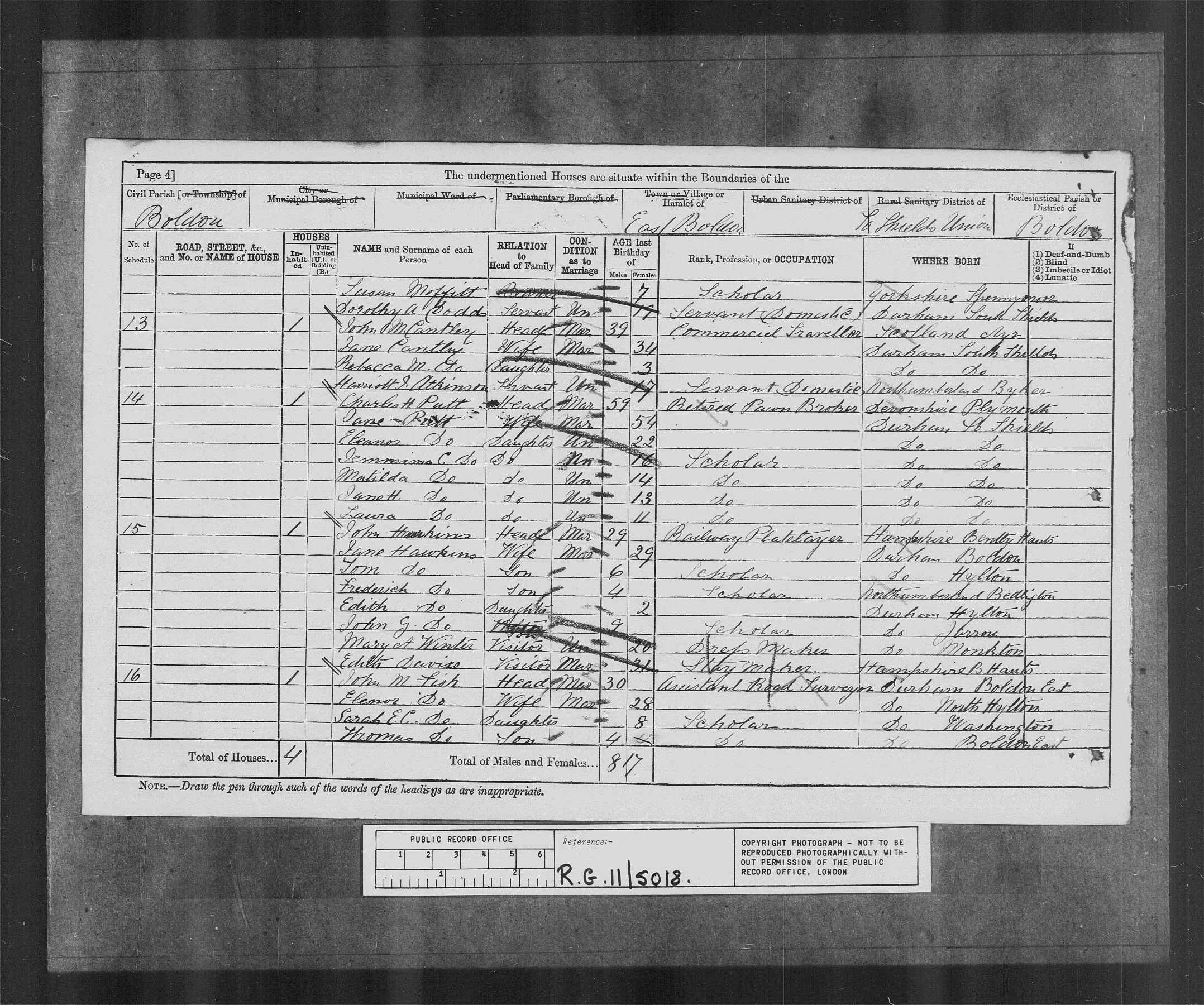 - [S156] 1881 Census Westgate, FHL Film 1342218 PRO RG11 Piece 5050 Folio 7 Page 7.