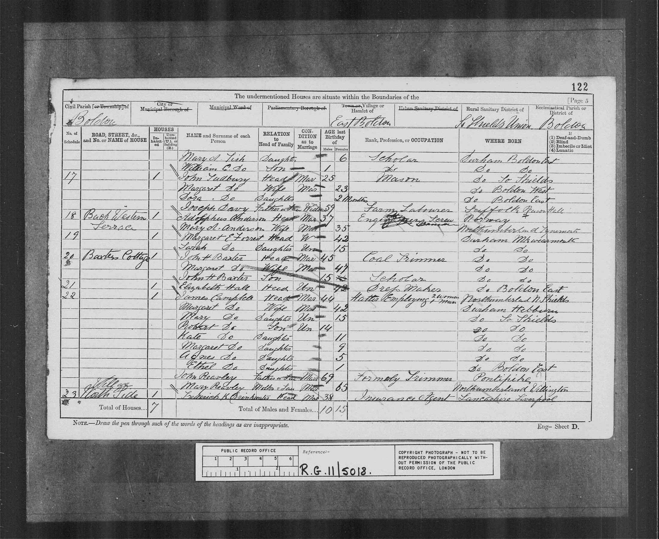 - [S520] 1891 Census Newcastle, 1891 Census Kyle Place Elswick Newcastle upon Tyne