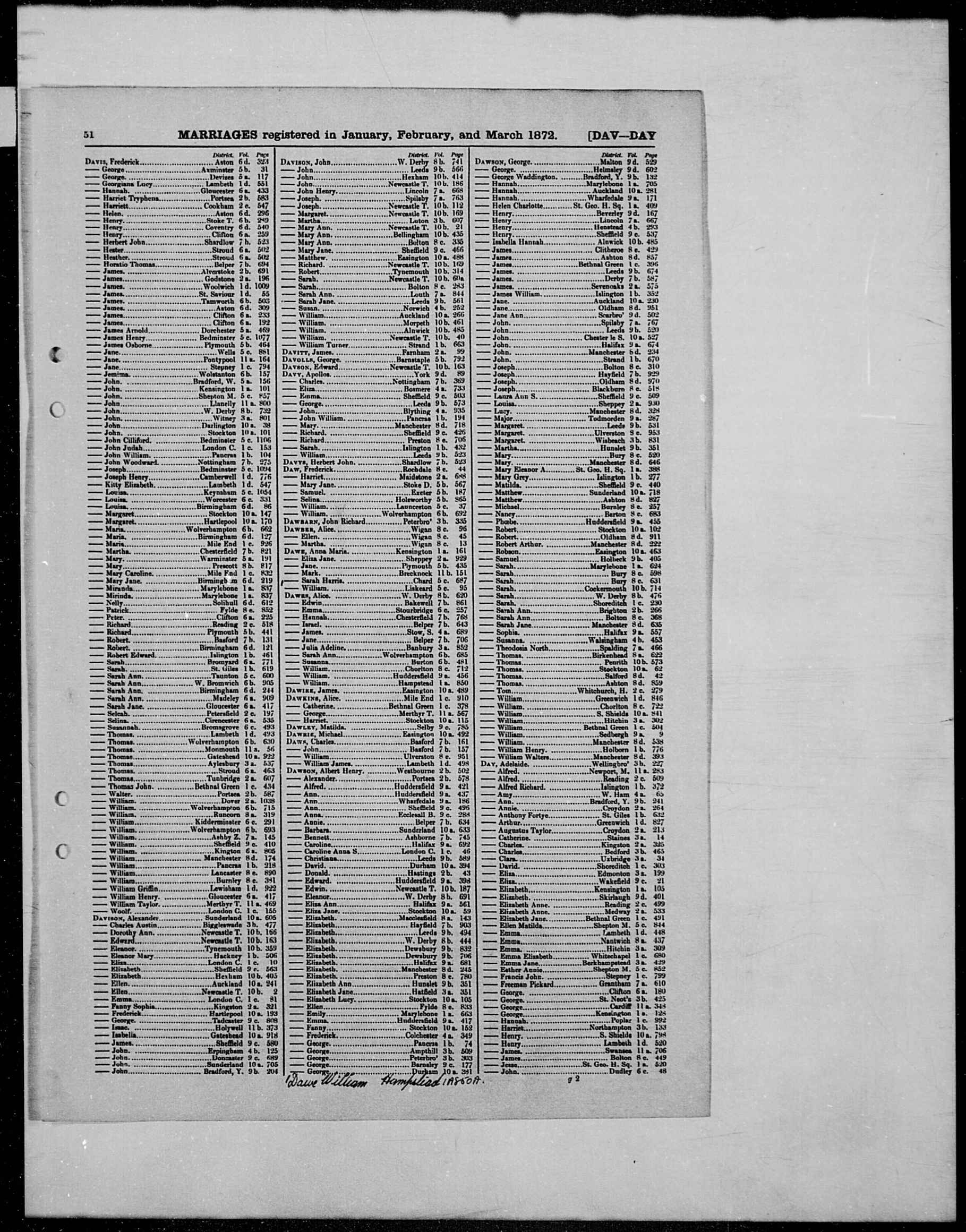 | Marriage* | 14 May 1771 | He married Elizabeth Clark on 14 May 1771 at (Hebron) Hebburn, Northumberland, England; Marriage John Davison and Elizabeth Clark, Bothal wit John James,Martha Reed Banns @ Bothal John Davison, Hebron & Elisabeth Clark, May 12 1771.1 Familysearch.org John Davison England, Marriages, 1538–1973 marriage: 1771 Hebron,? Northumberland,? England spouse: Elizabeth Clark groom's name: John Davison bride's name: Elizabeth Clark marriage date: 1771 marriage place: Hebron, Northumberland, England indexing project (batch) number: M00101-3 system origin: England-VR source film number: 1068646 |