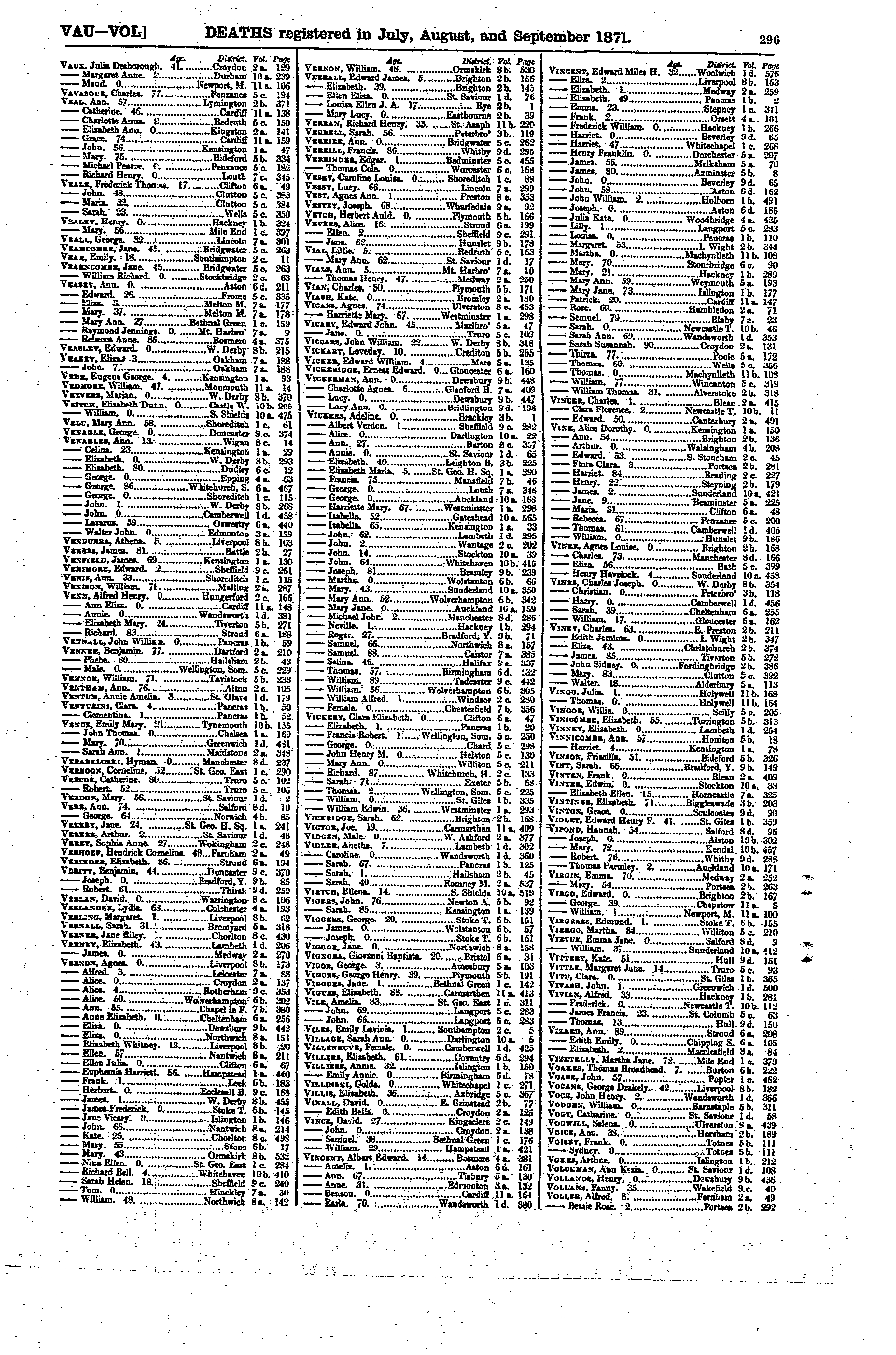 | Death* | 1871 | He died in 1871 at Frome, Somerset, England; Sep Qu.7 GRO DEATHS Registered July, August and September 1871 VEASEY, Edward 26 Frome 5c, 335 |
