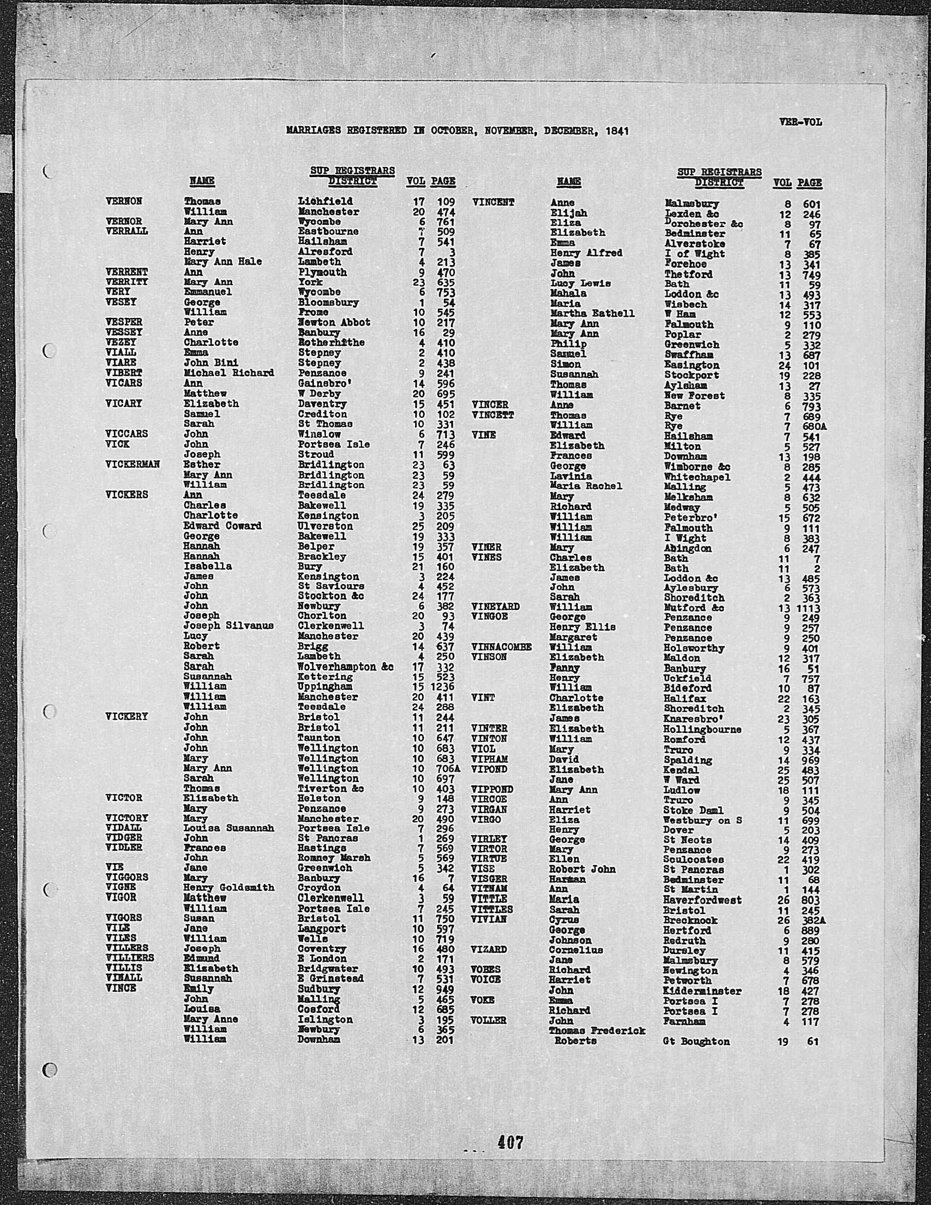 | Name Variation | 3 January 1830 | As of 3 January 1830, John Vesey was also known as John Veasey.2 |
