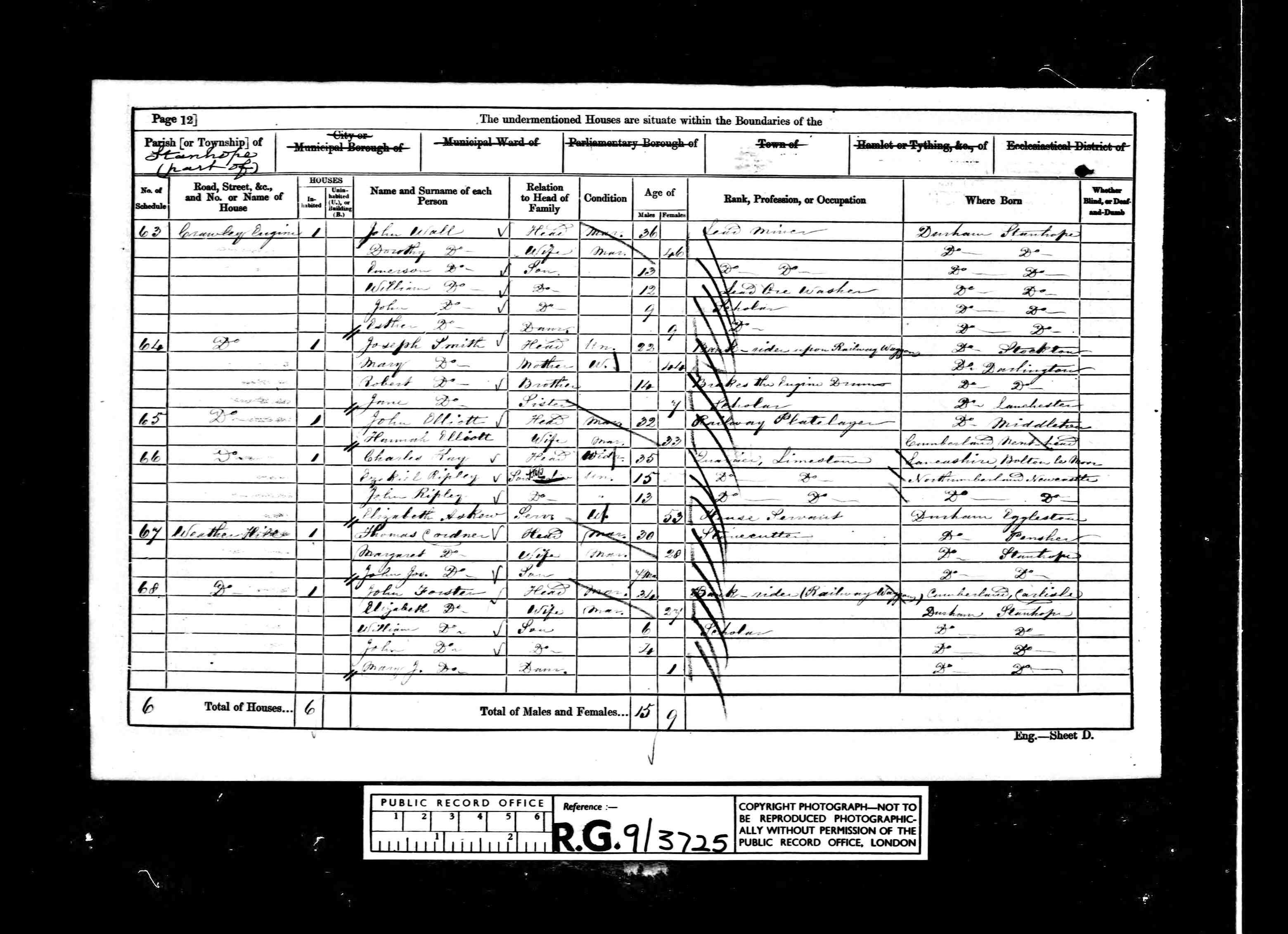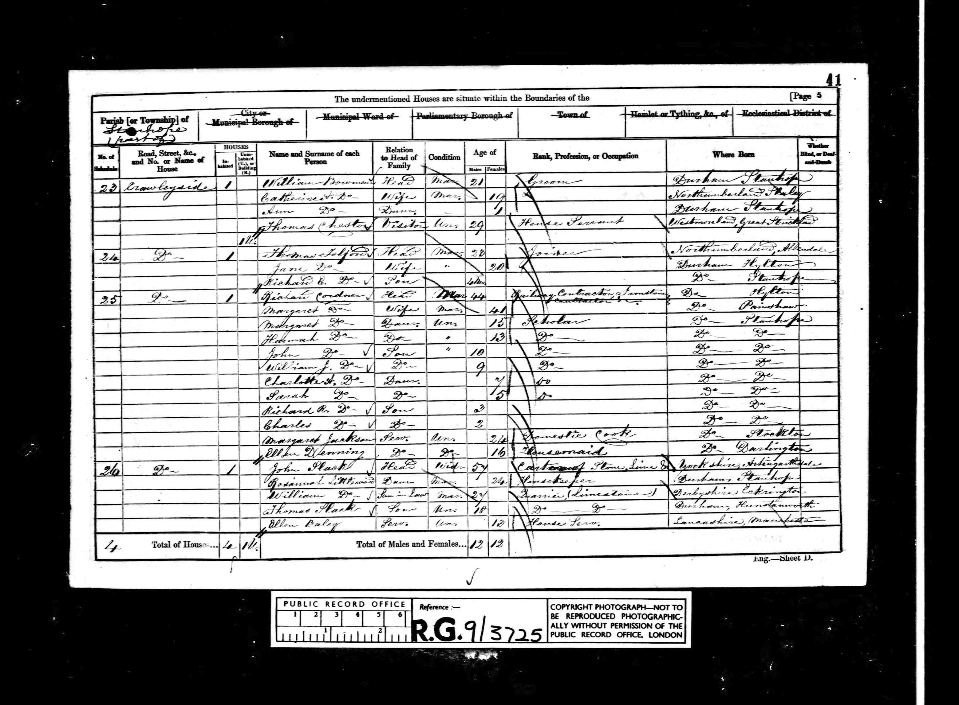 James Cordner Brother Single Male 48 1863 Stanhope Co Durham Mason's Labourer