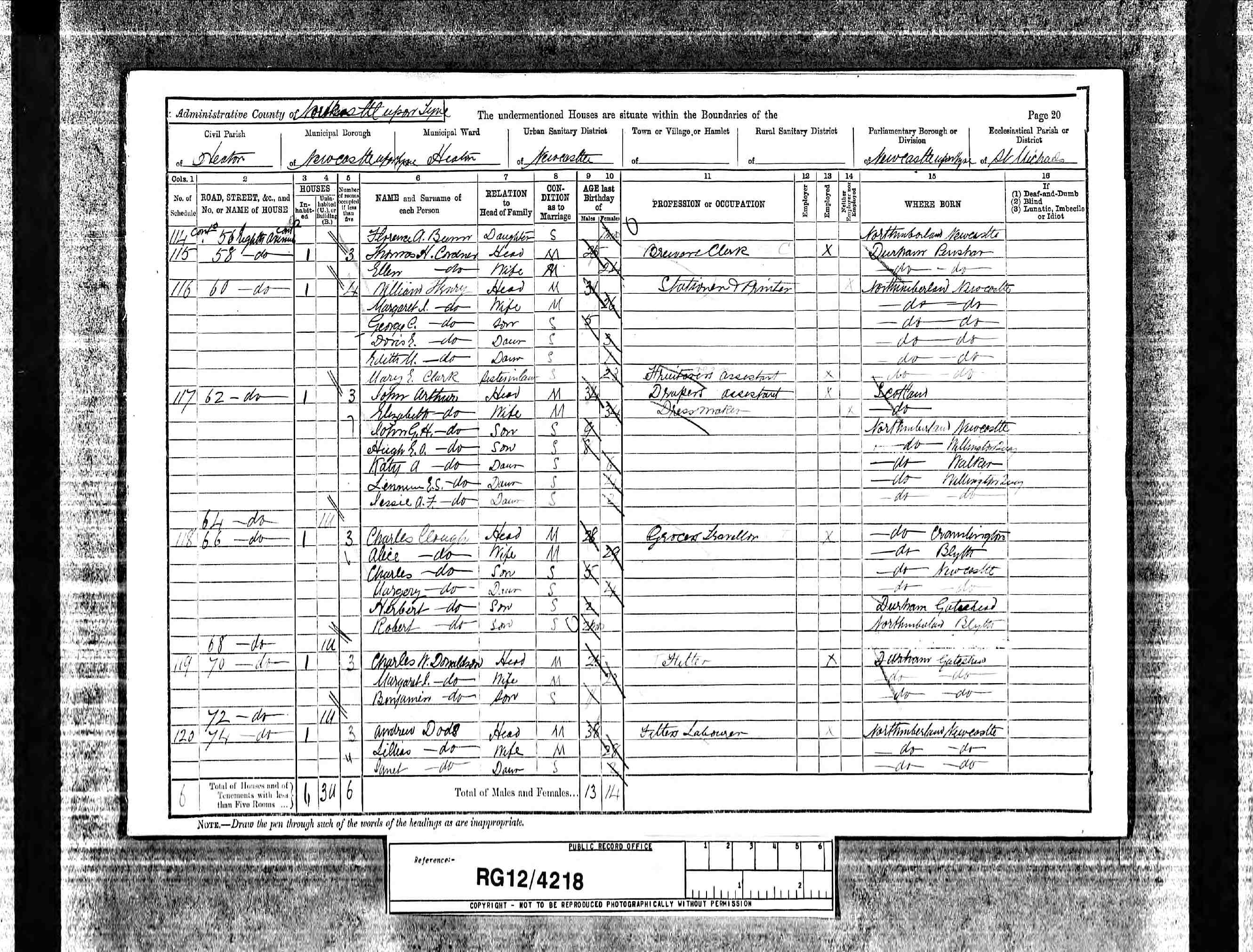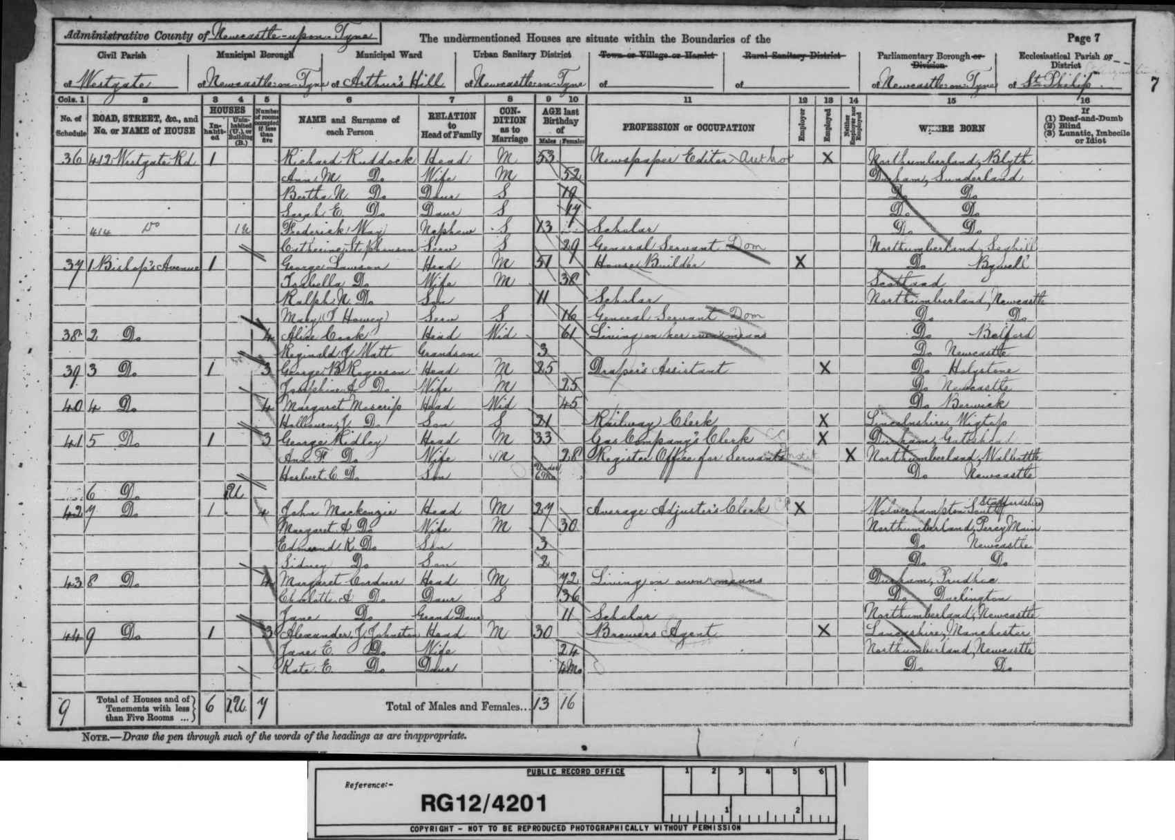 - [S520] 1891 Census Newcastle, Righton Avenue