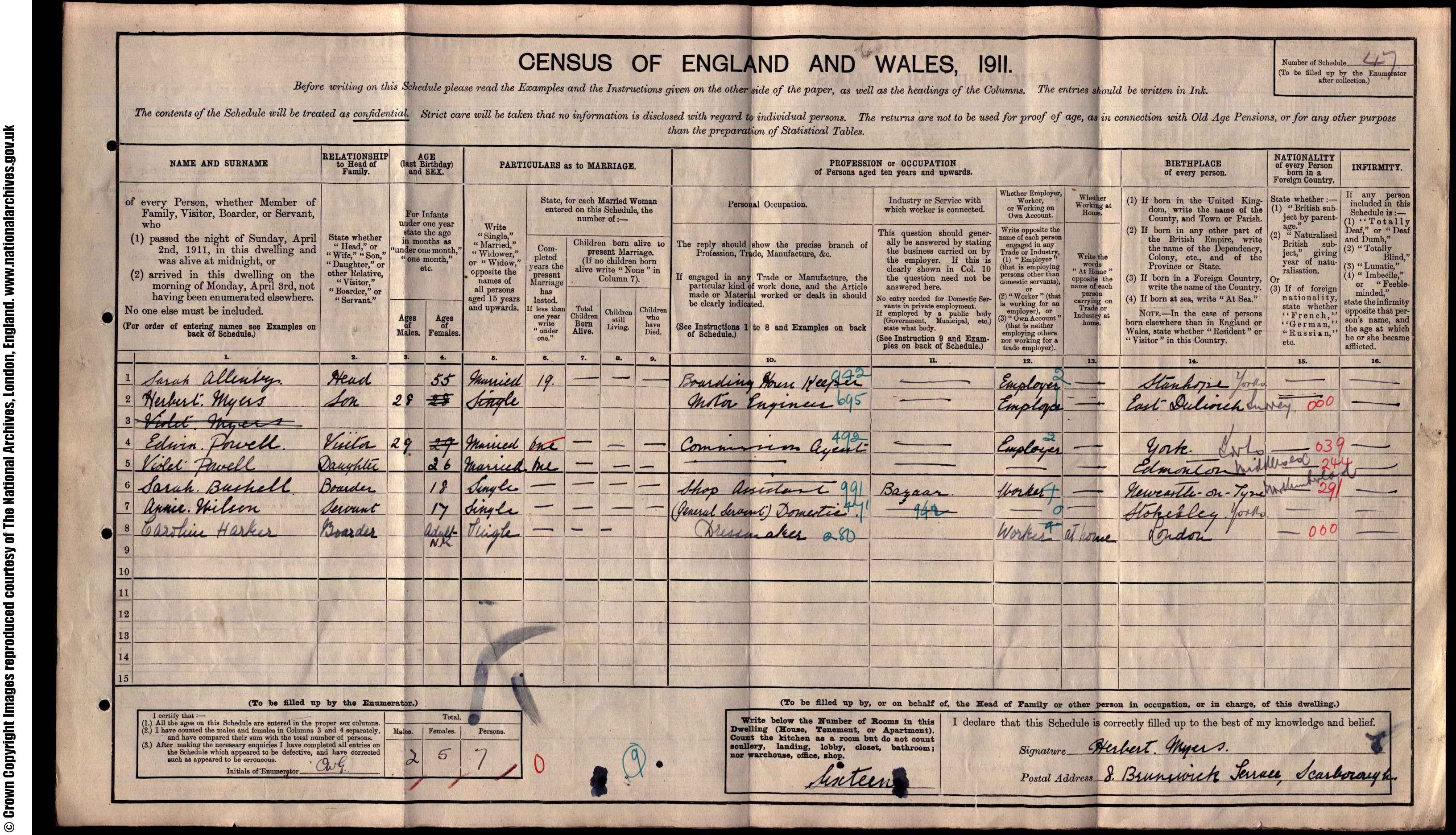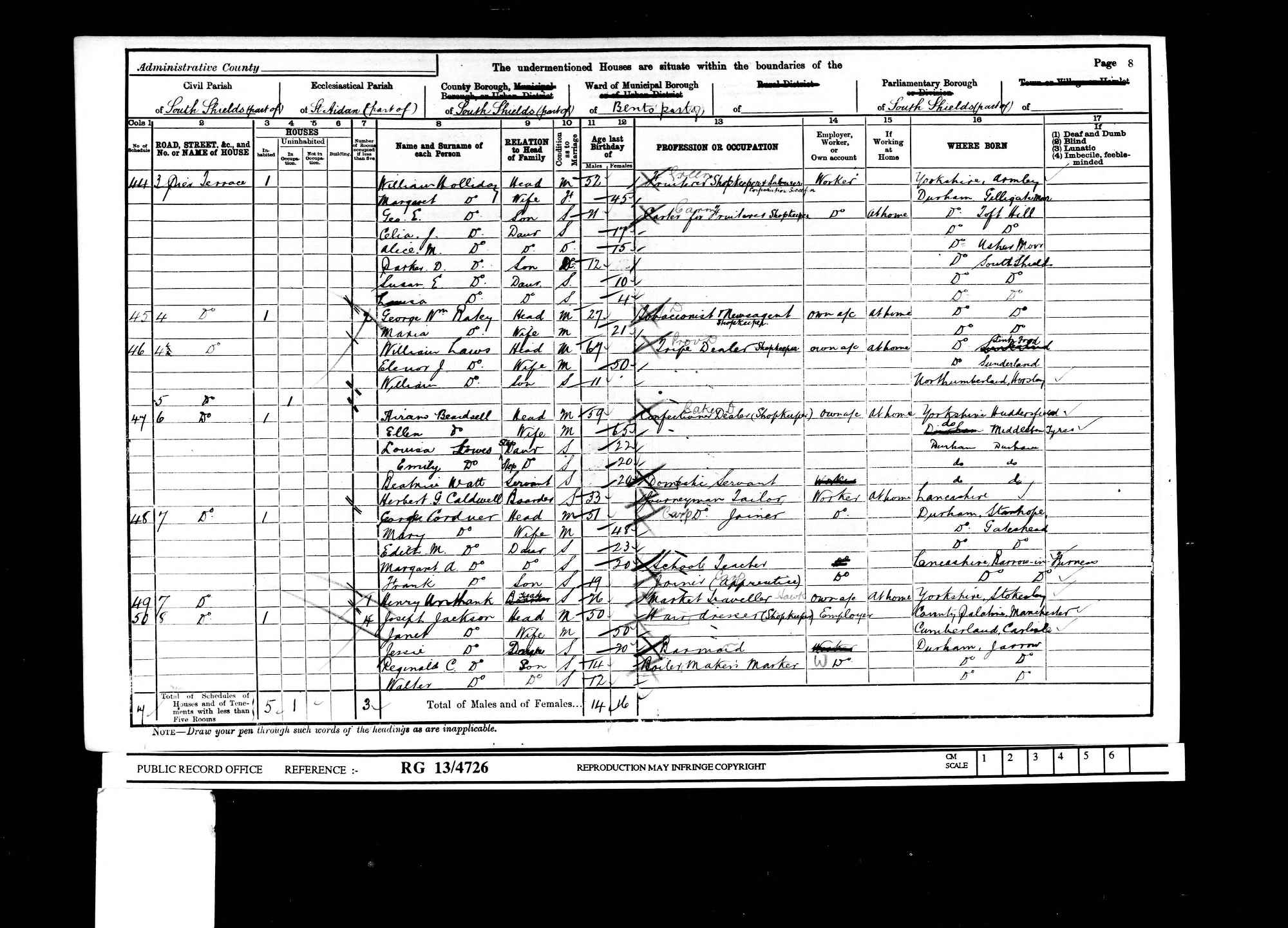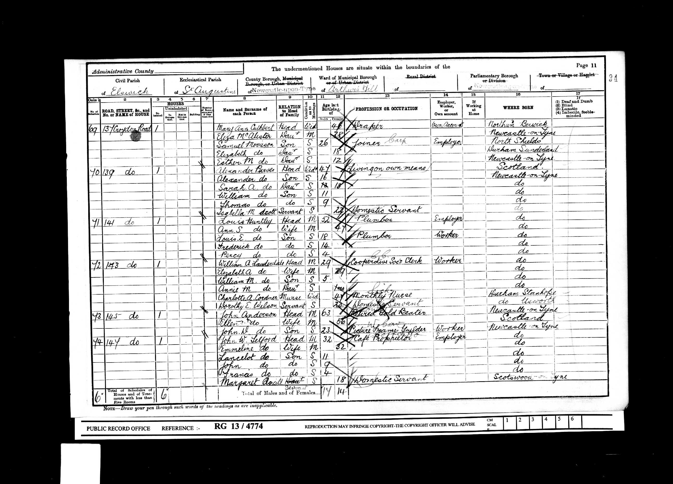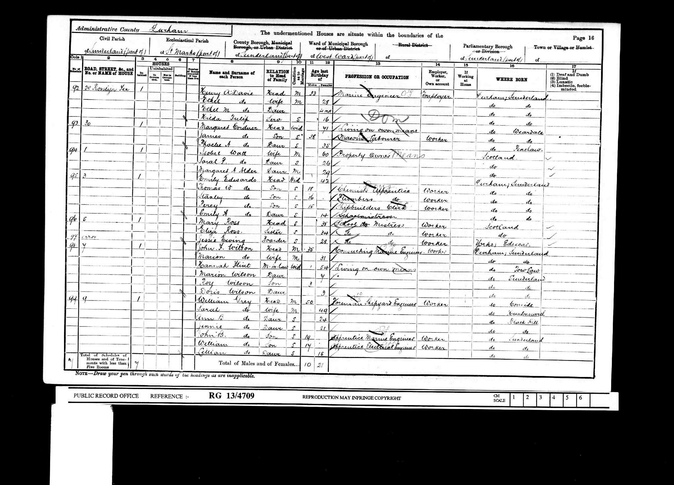 (c) brightsolid online publishing ltd - [S476] 1911 Census Sunderland, 1911 England, Wales & Scotland Census Transcription