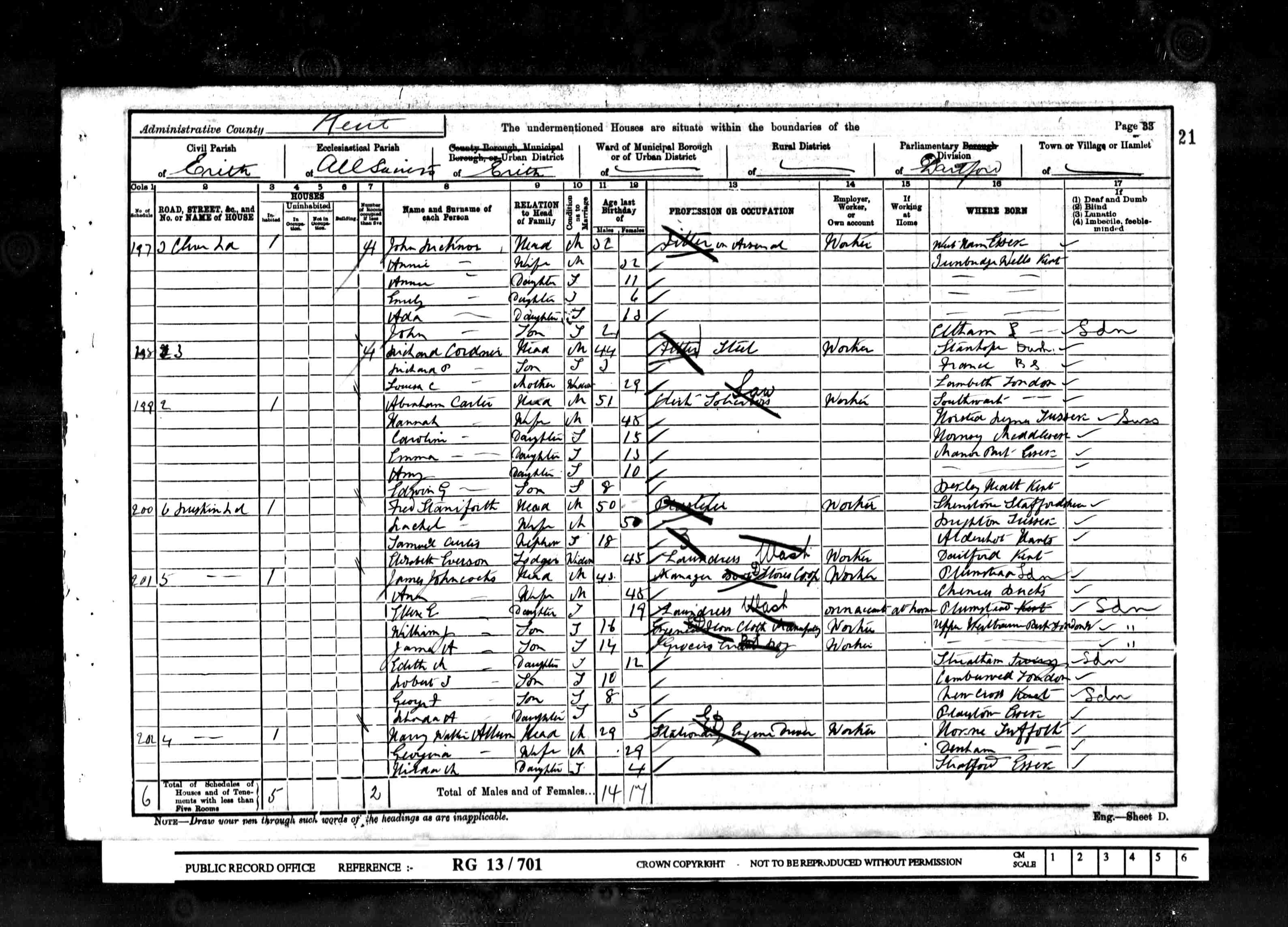 Census reference RG14PN30158 RG78PN1740 RD555 SD1 ED15 SN89