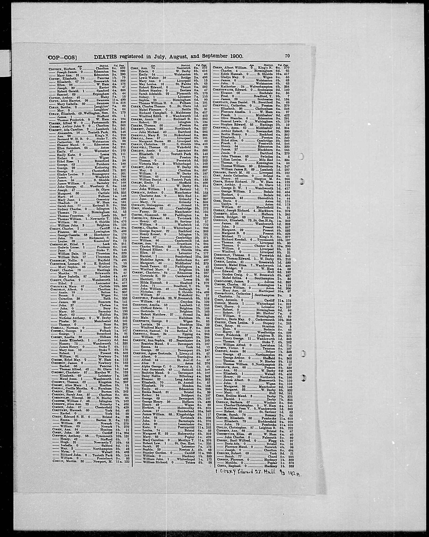 | (Witness) Baptism | 7 July 1900 | George William Cordner witnessed the baptism of Kathleen Cordner on 7 July 1900 at Christ Church, Ashbrooke, Co. Durham, England.5 |