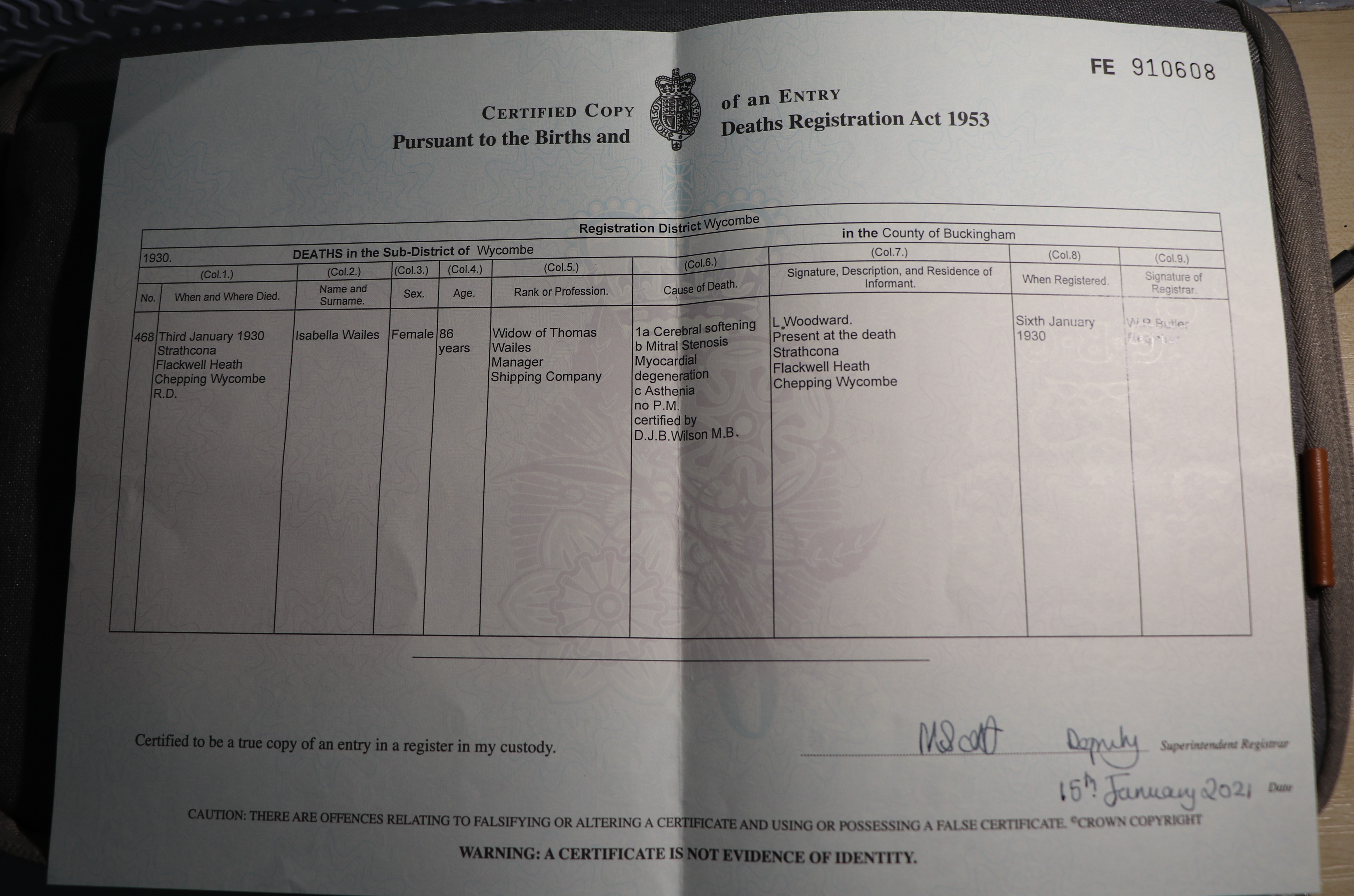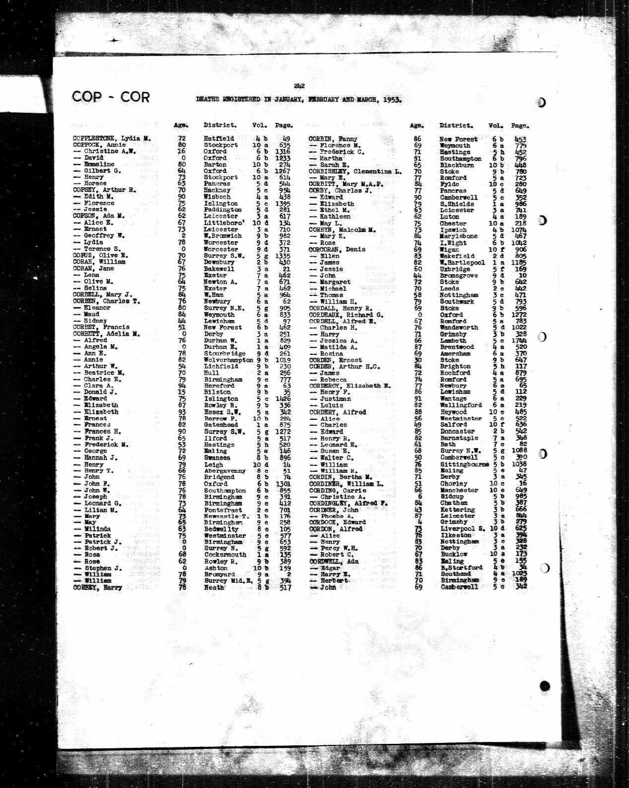 | Death* | 1953 | She died in 1953 at Leicester, Leicestershire, England; Jan, Feb, Mar Qu.10 |