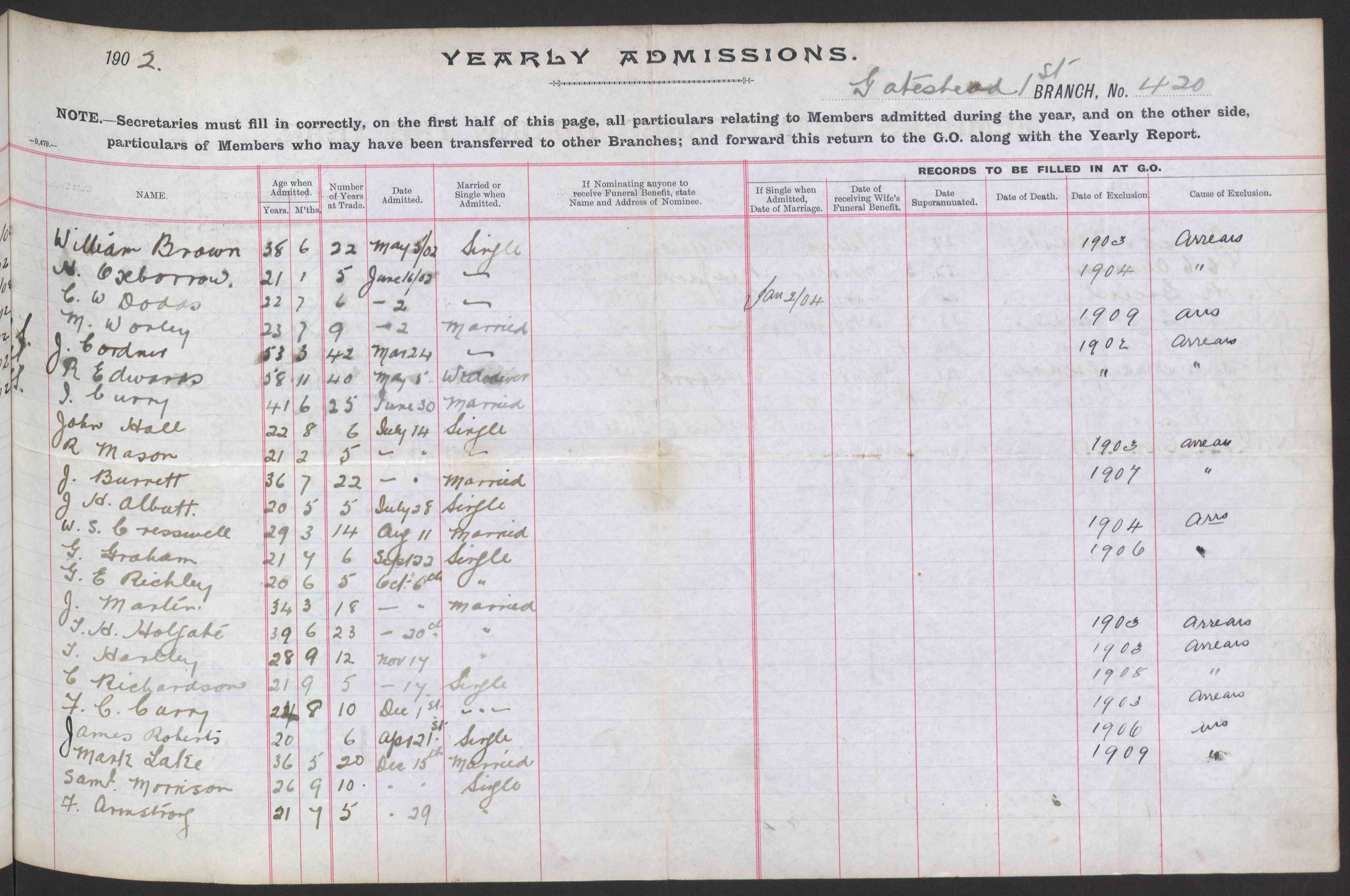 | Birth* | 13 September 1872 | He was born on 13 September 1872 at Penshaw. |