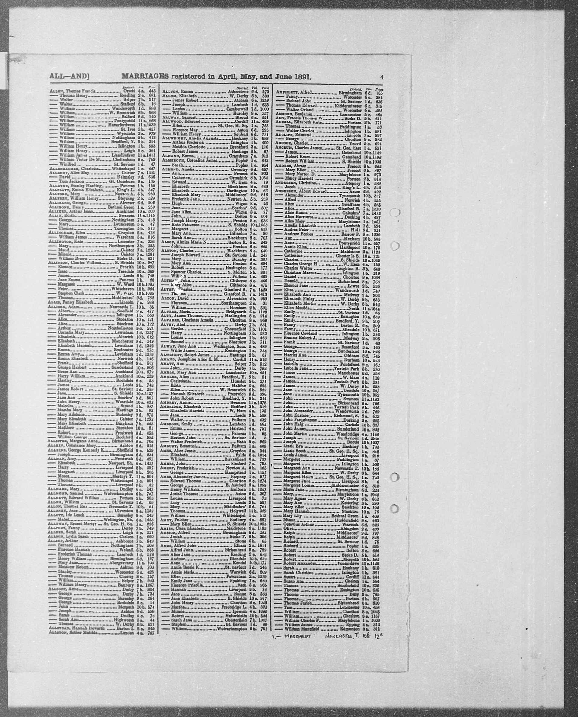 - [S431] GRO Tynemouth, Record Transcription: