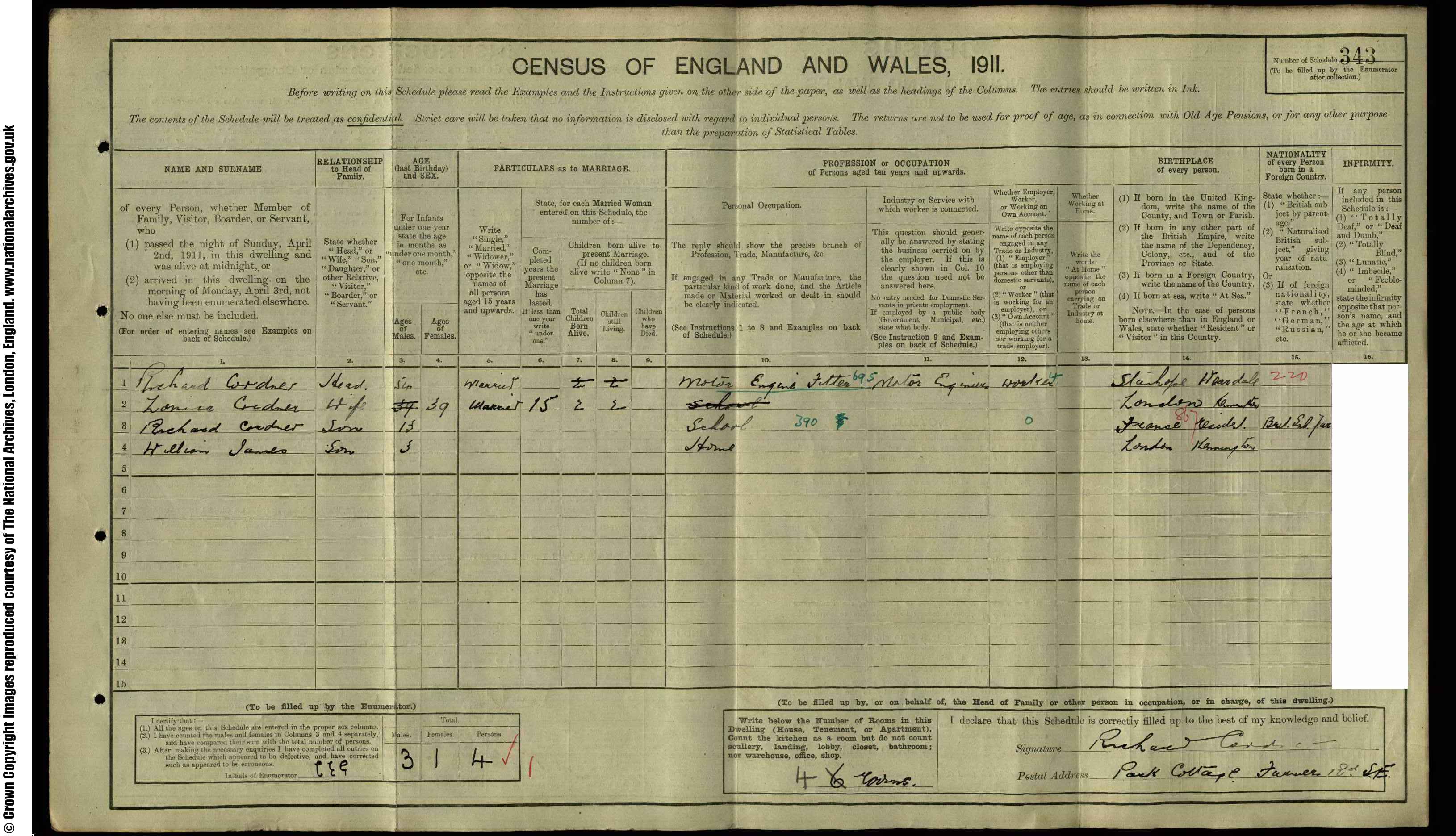 1911 England, Wales & Scotland Census Transcription