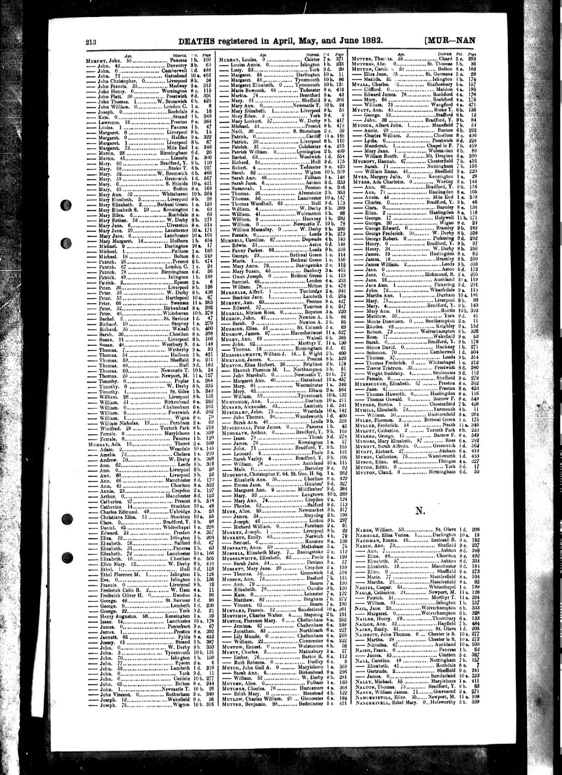 | Death* | 1882 | He died in 1882 at (probably Seghill), Tynemouth, Northumberland, England; Jul Qu.9 Deaths Registered in April, May and June 1882 Murton, William 59 Tynemouth 10a 132 |