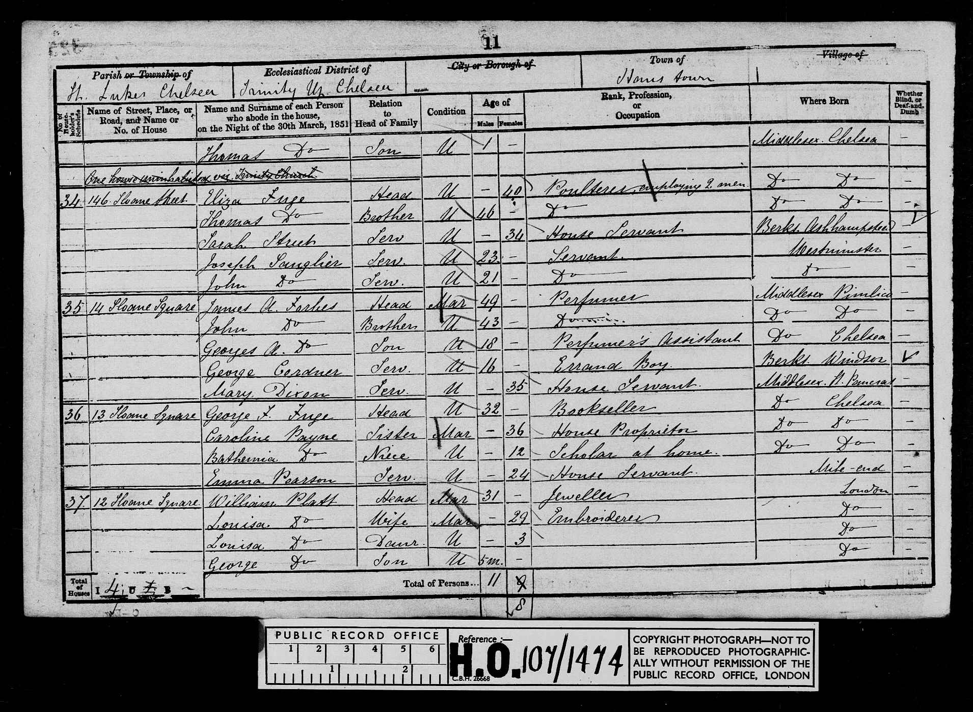 1851 census transcription details for: 14, Sloane Street, Saint Luke Chelsea, Hans Town