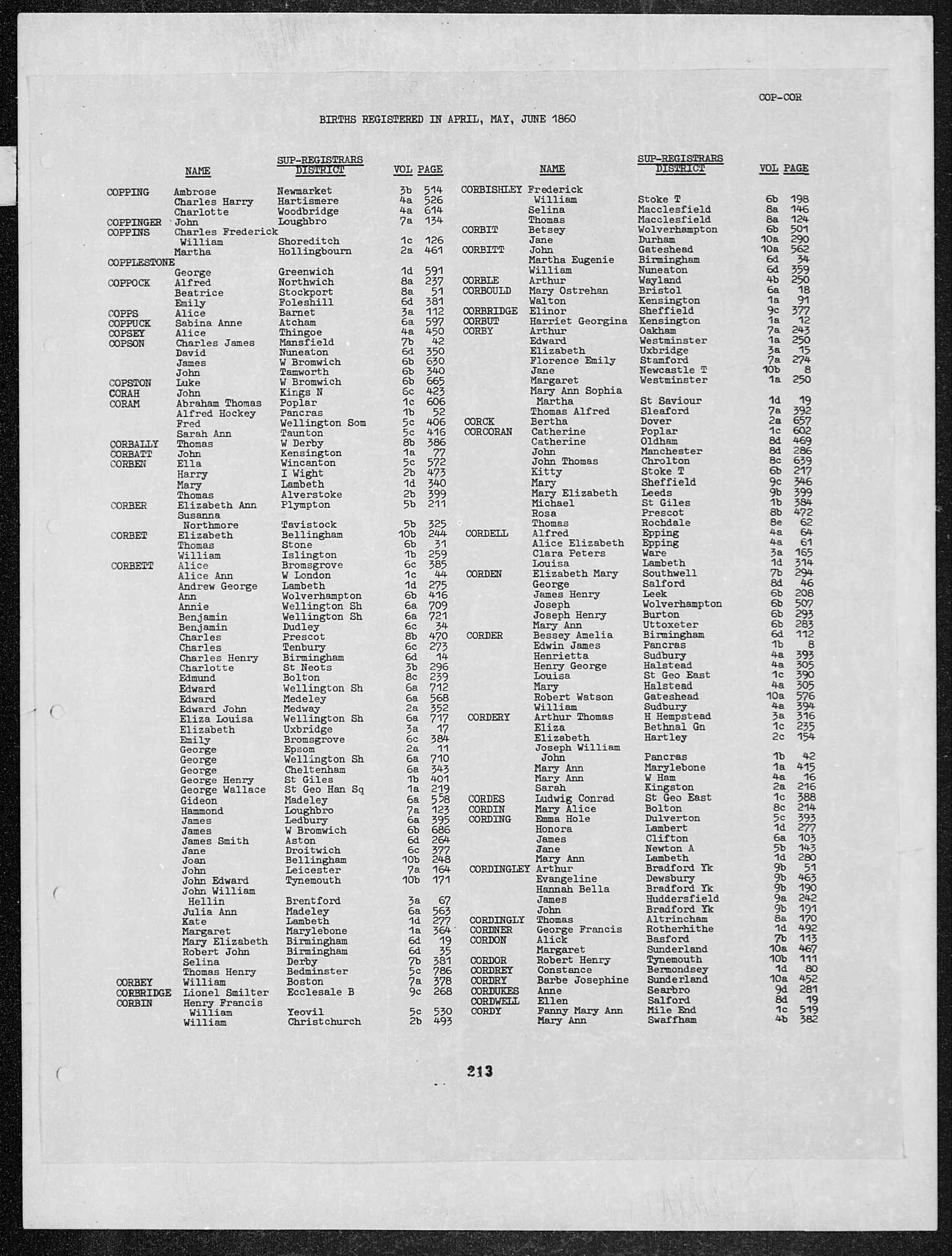 - [S103] LDS Bucks, Cordner, Horatio Alexander (Male) Christ 30 Oct 1836 (son of) Ralph Frederick August Cordner / Mary Anne at Colnbrook