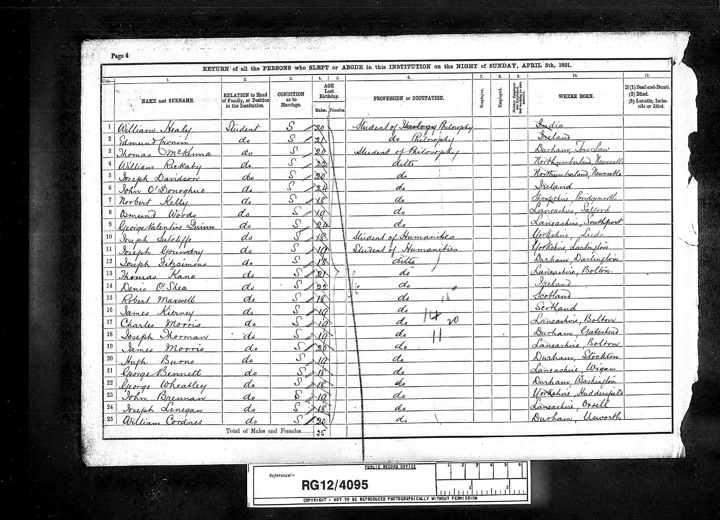 OLIVER, Stephen Servant Unmarried M 19 1832 Spirit Merchant (Asst) Stanhope, Durham