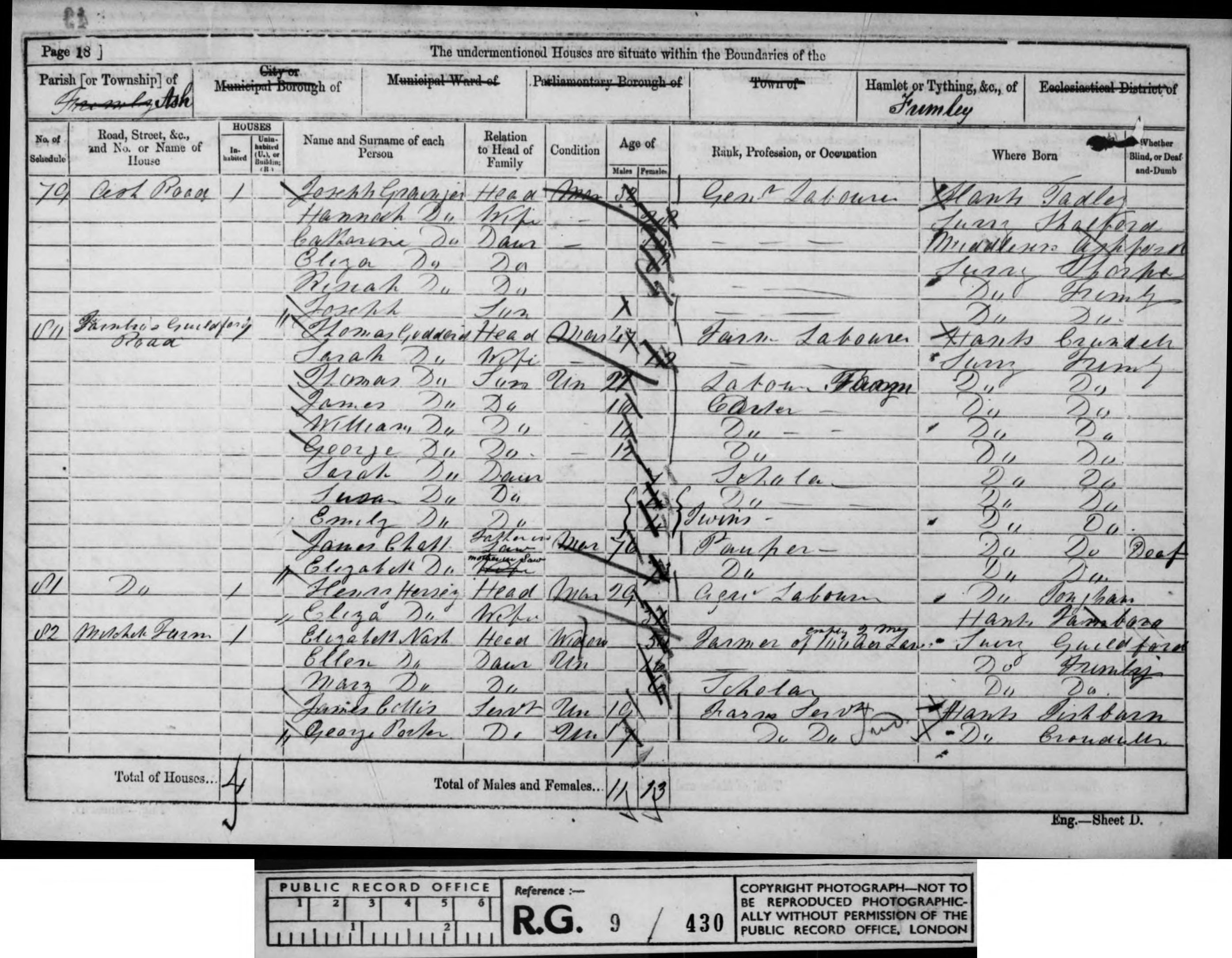 | Occupation | 1851 | She was Farm Lab in 1851.2 |