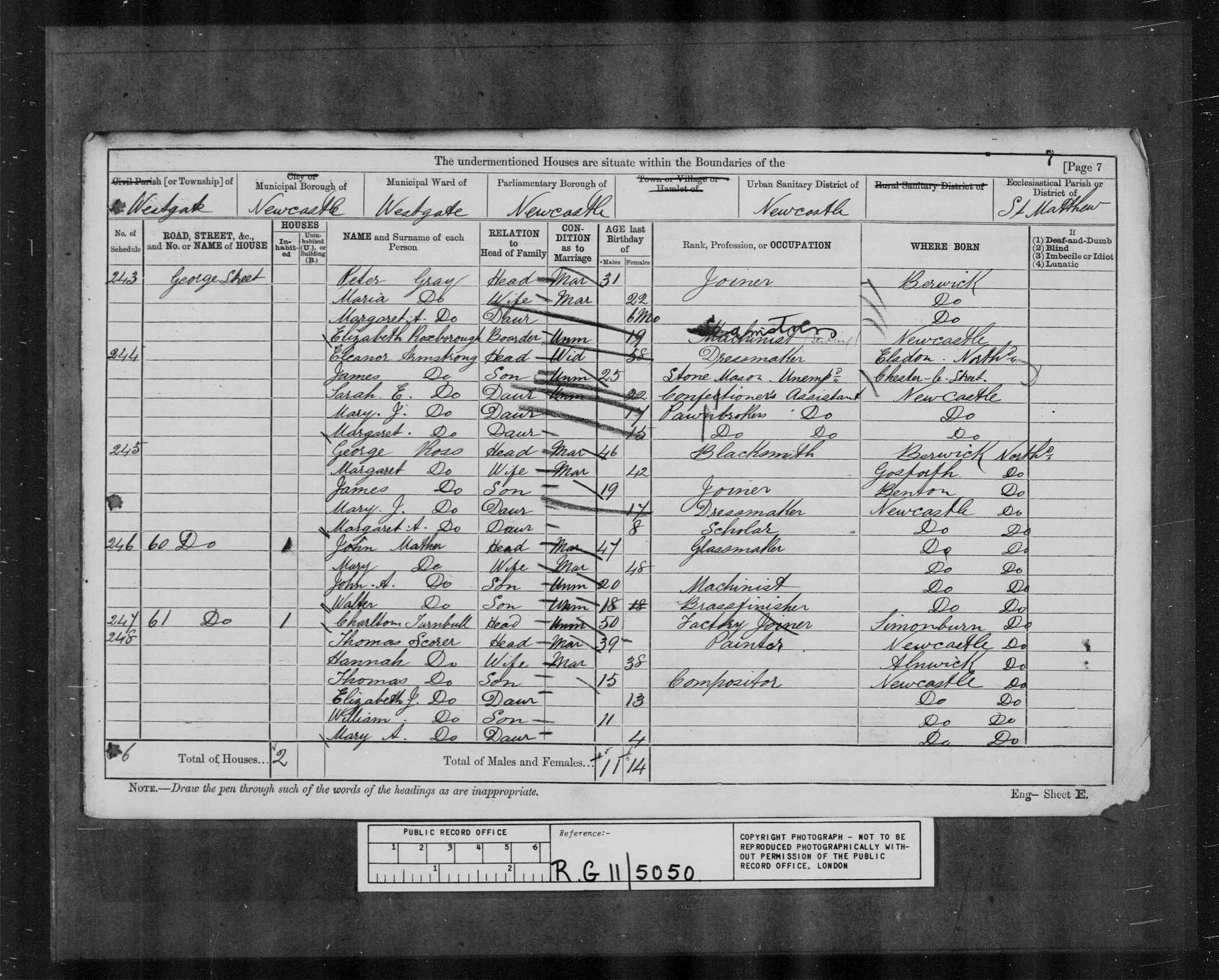 Margaret A Cordner Wife Married Female 26 1855 Accountants wife Gateshead, Durham, England