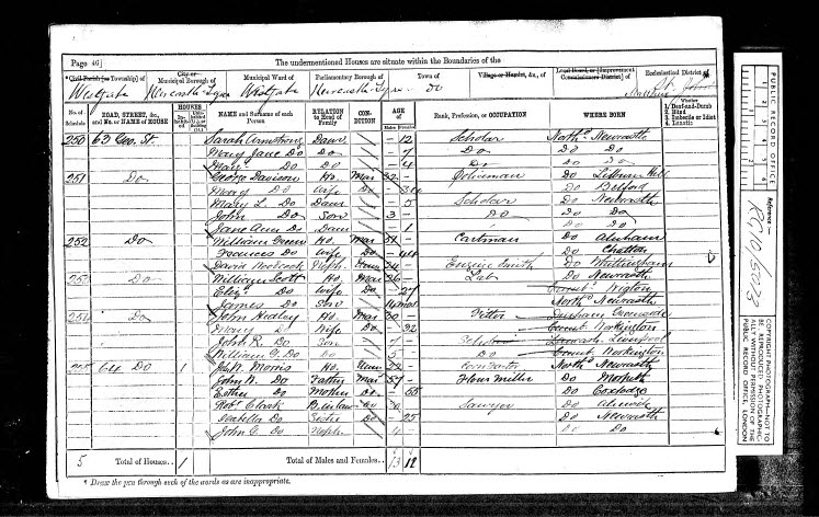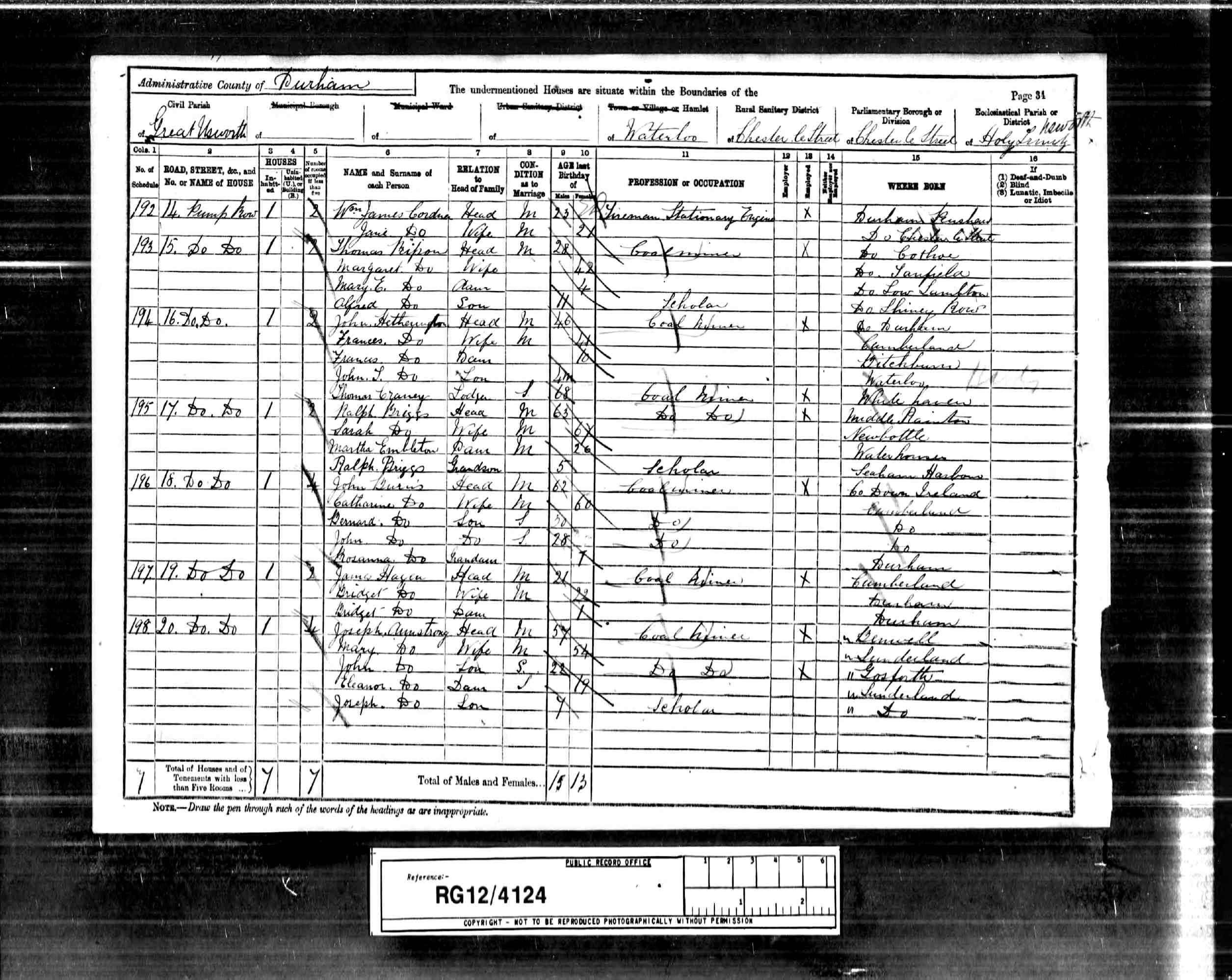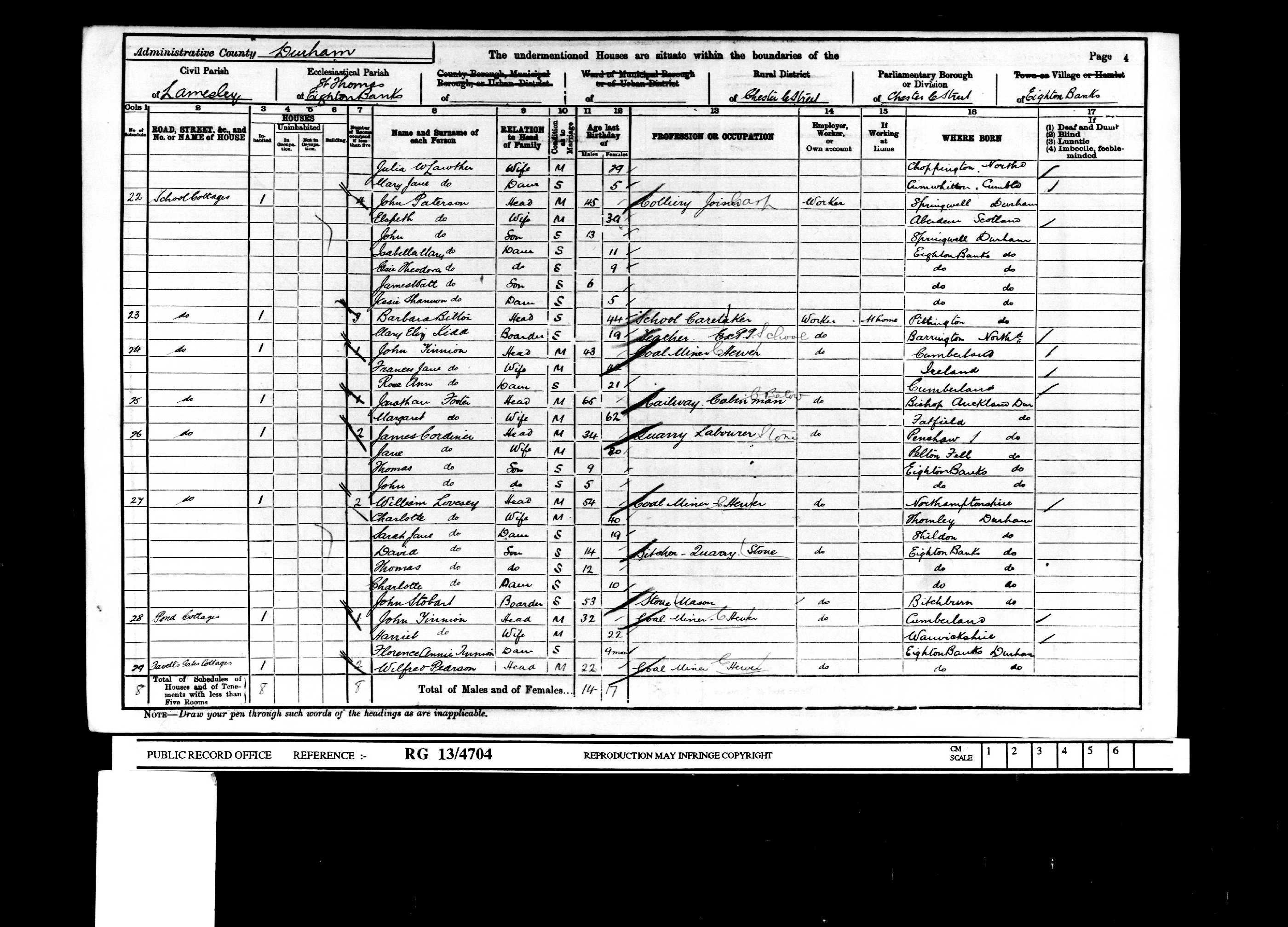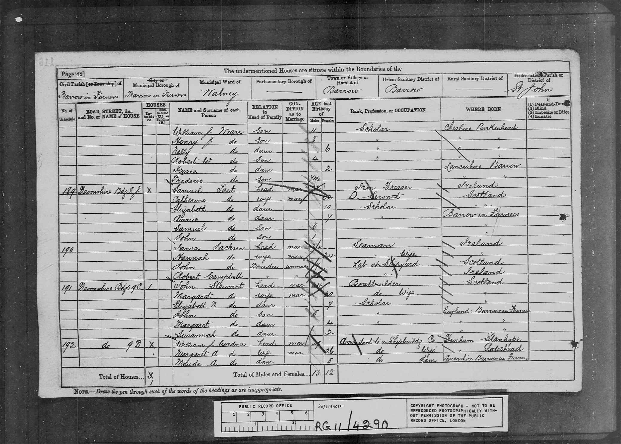 - [S153] 1881 Census Barrow, FHL Film 1342025 PRO Ref RG11 Piece 4290 Folio 116 Page 42.