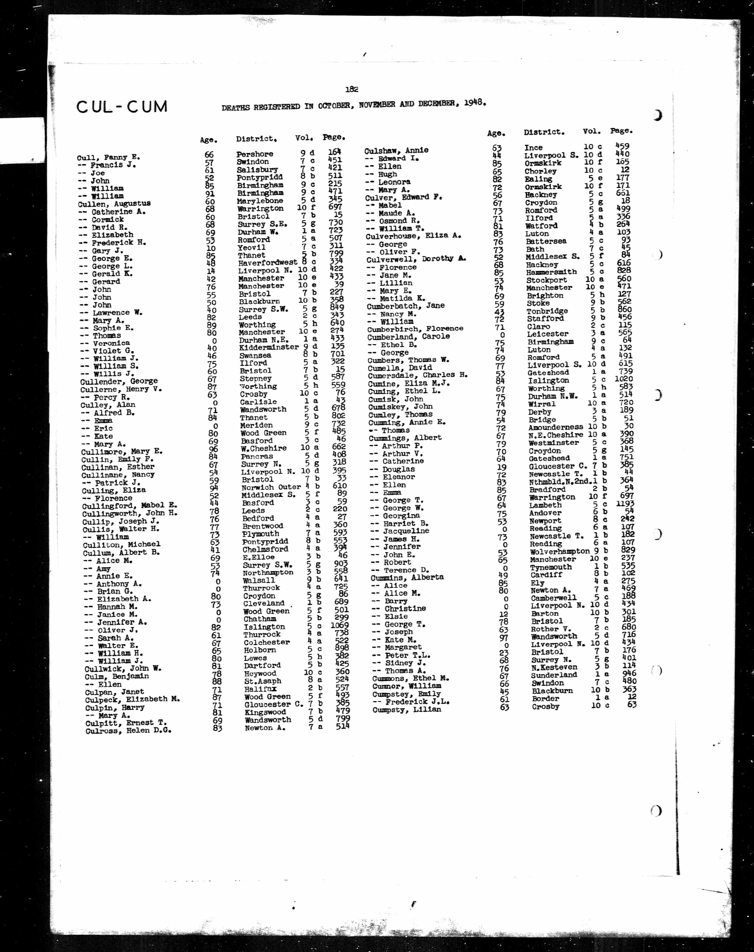 | Death* | 1948 | Maude A Cordner died in 1948 at Bristol, England; Oct-Nov-Dec Qu.9 |