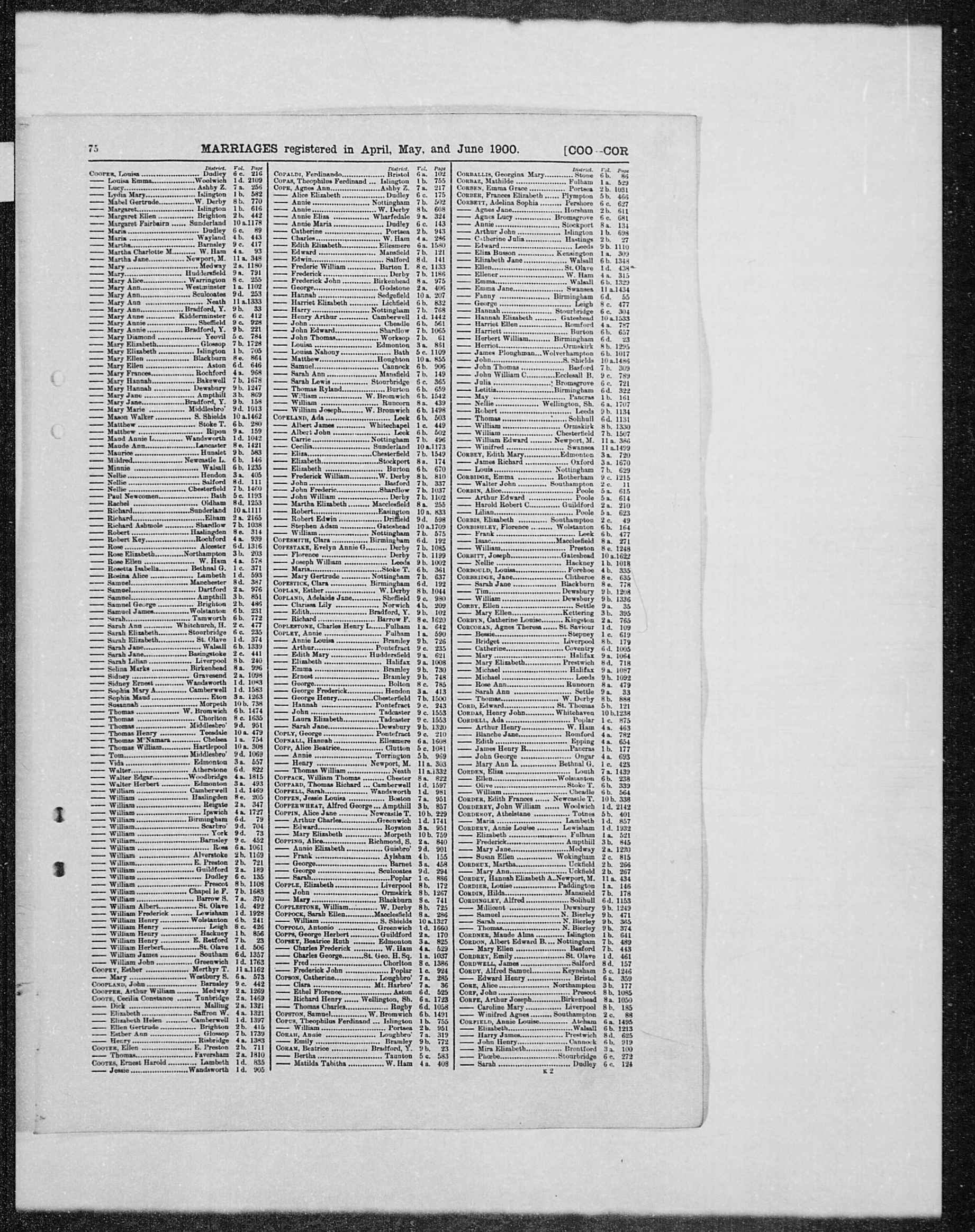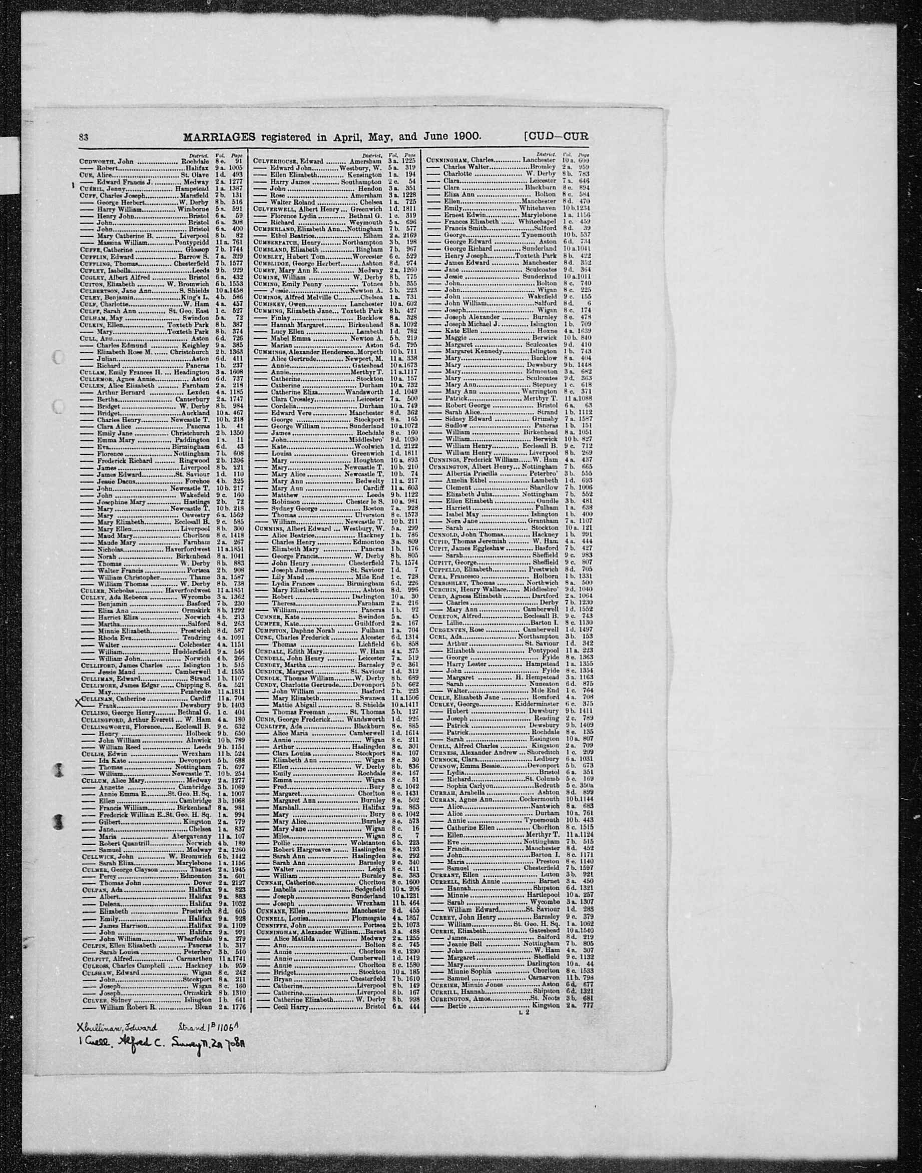 | Marriage* | 1900 | Maude A Cordner married Sidney Culver in 1900 at Islington, London, Middlesex, England; Apr-May-Jun Qu.6 |