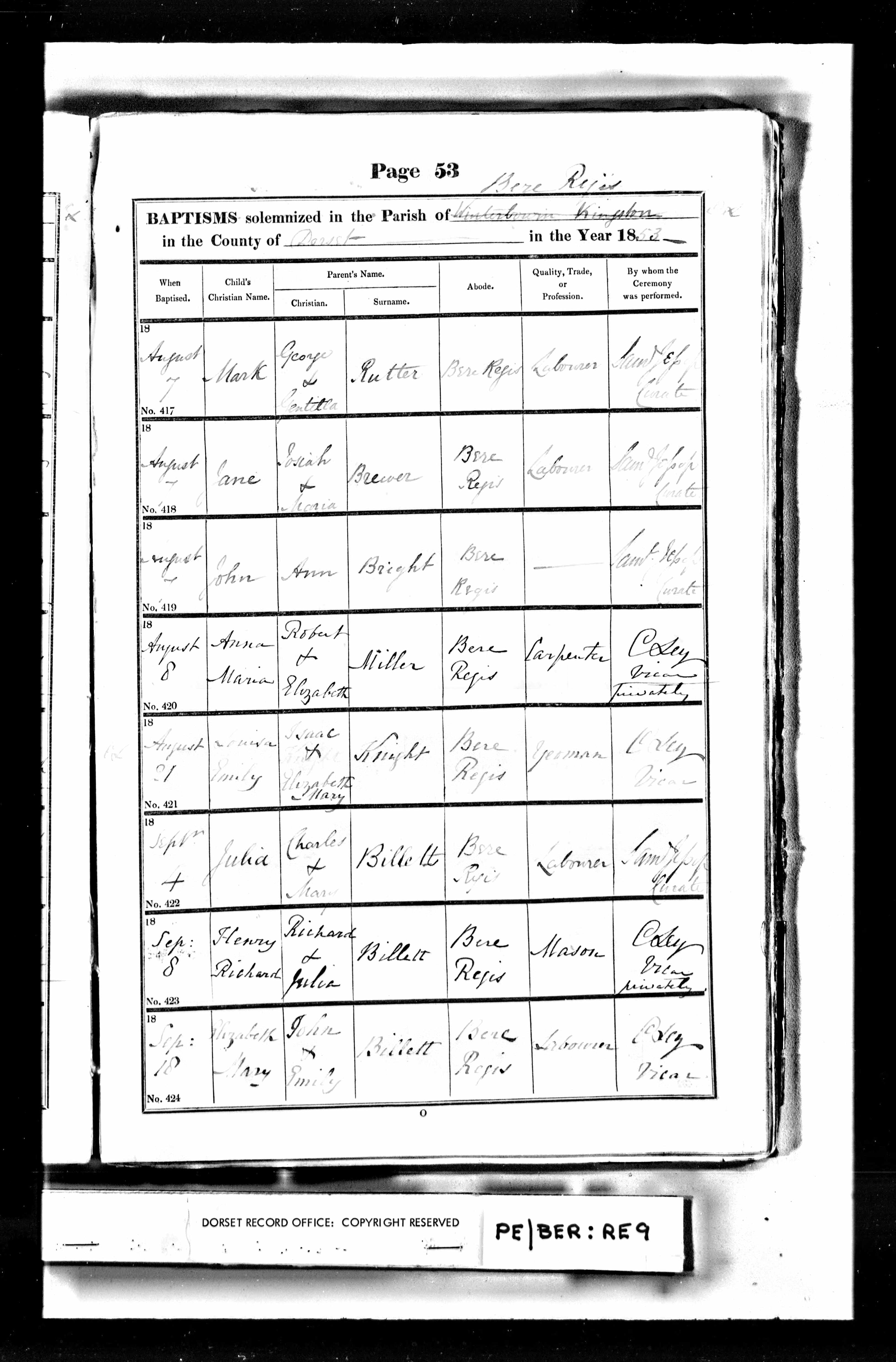 - [S238] Bere Regis Parish Records, Record source: Dorset Baptisms