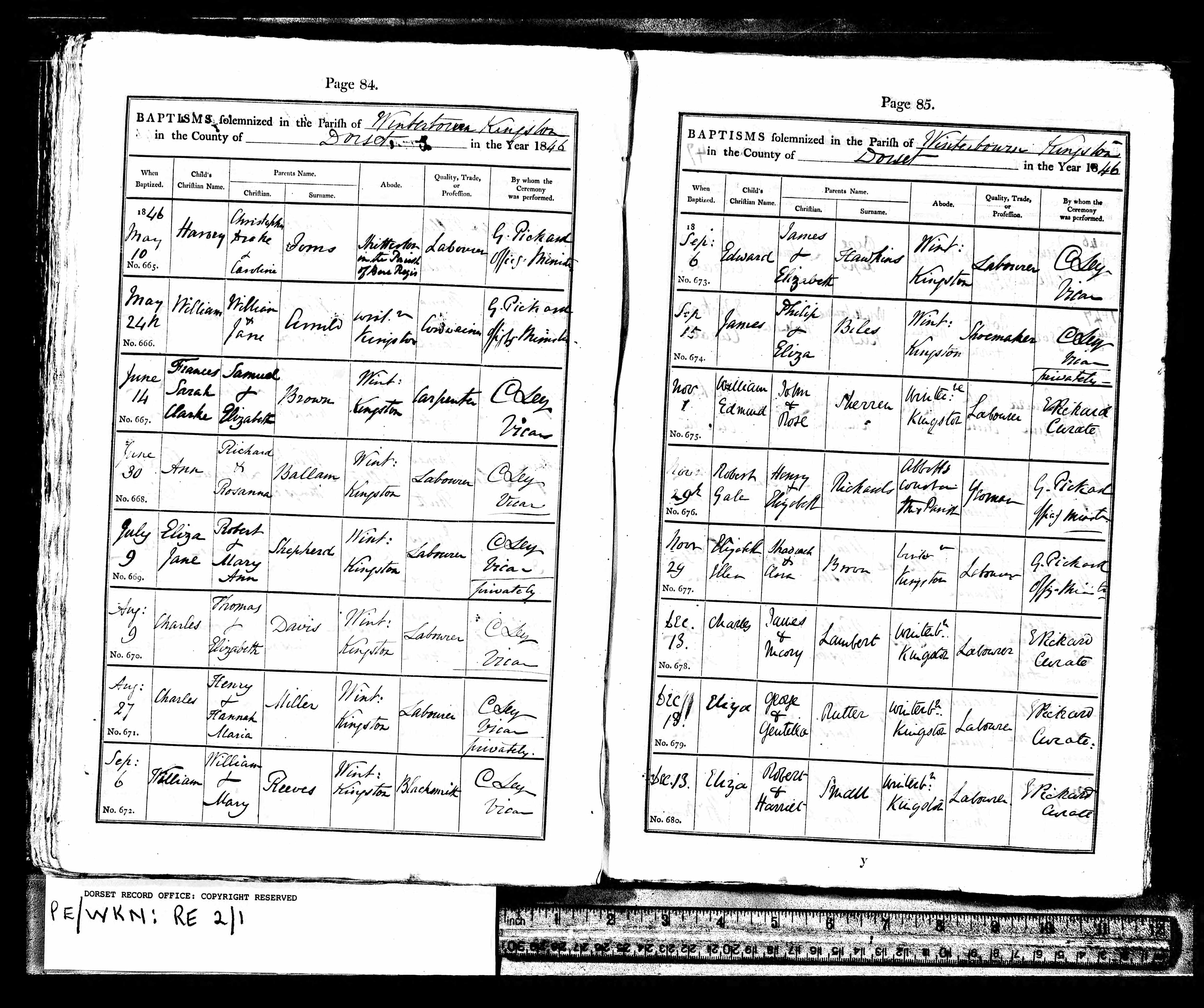 | (Witness) Baptism | 25 December 1850 | George Rutter witnessed the baptism of Maria Rutter on 25 December 1850 at Winterborne Kingston, Dorset, England.5 |