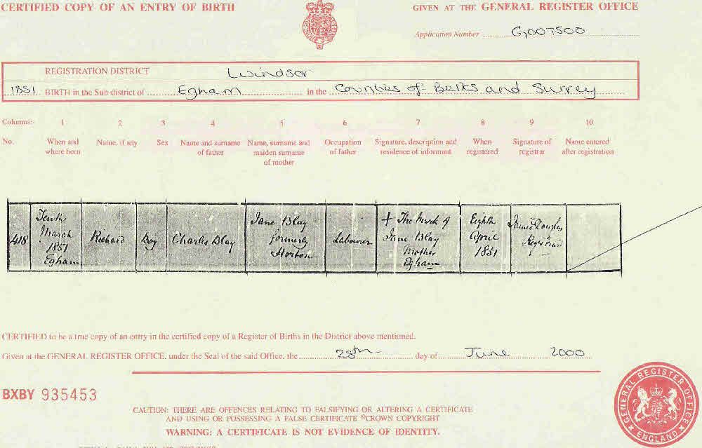Reference ID - [S109] GRO Windsor, Civil Registration event: Birth