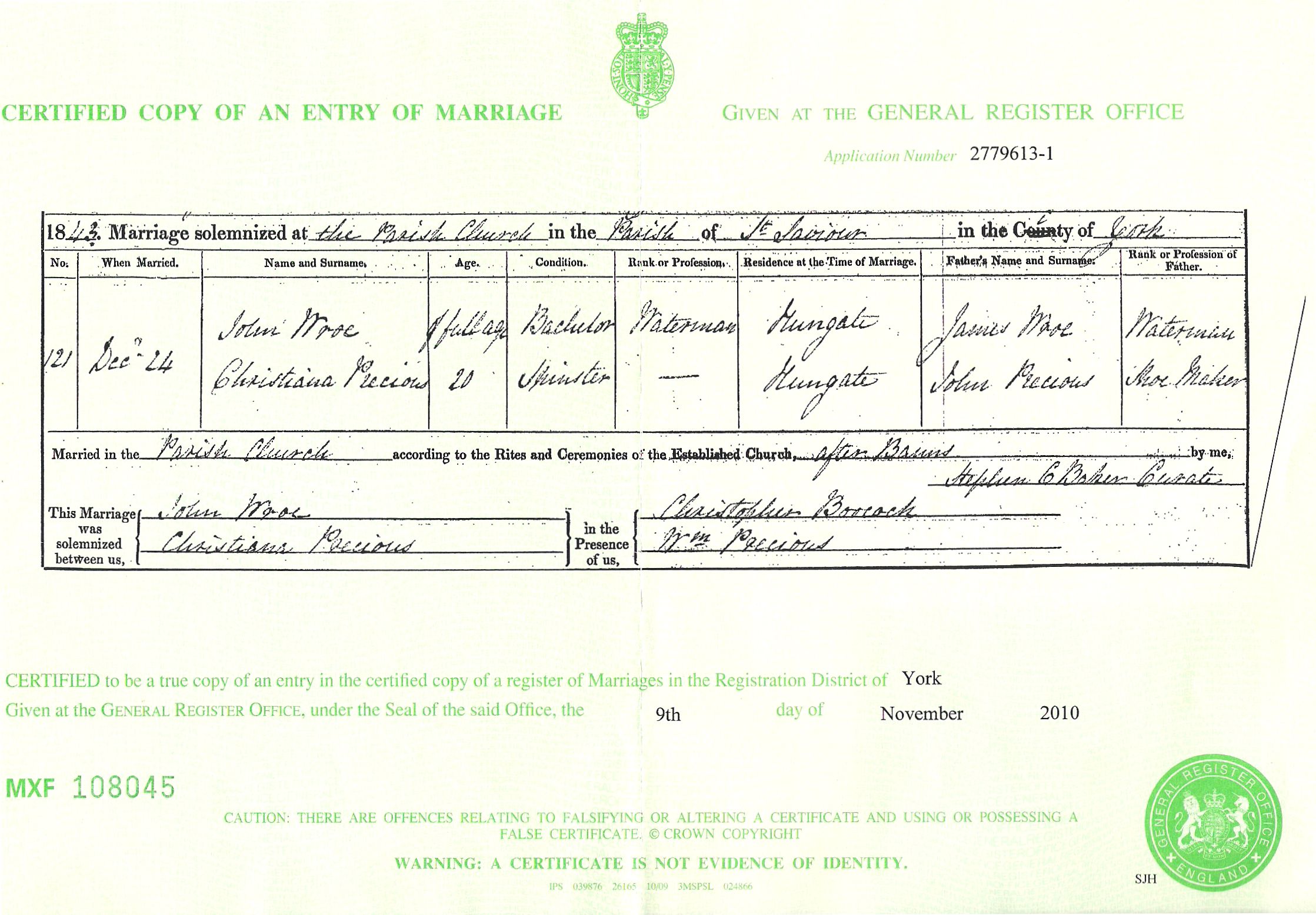 | Children | 1. | Margaret Moor b. 1 Feb 1818 |