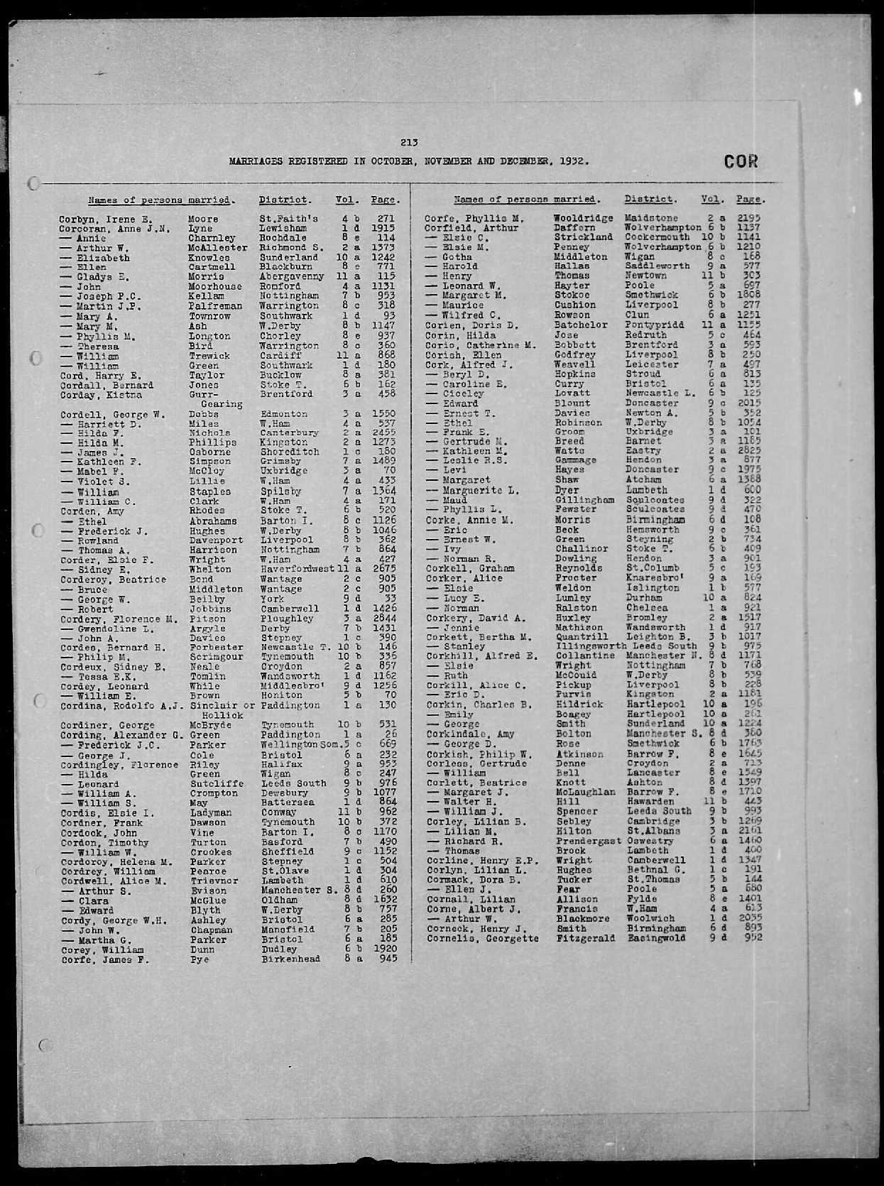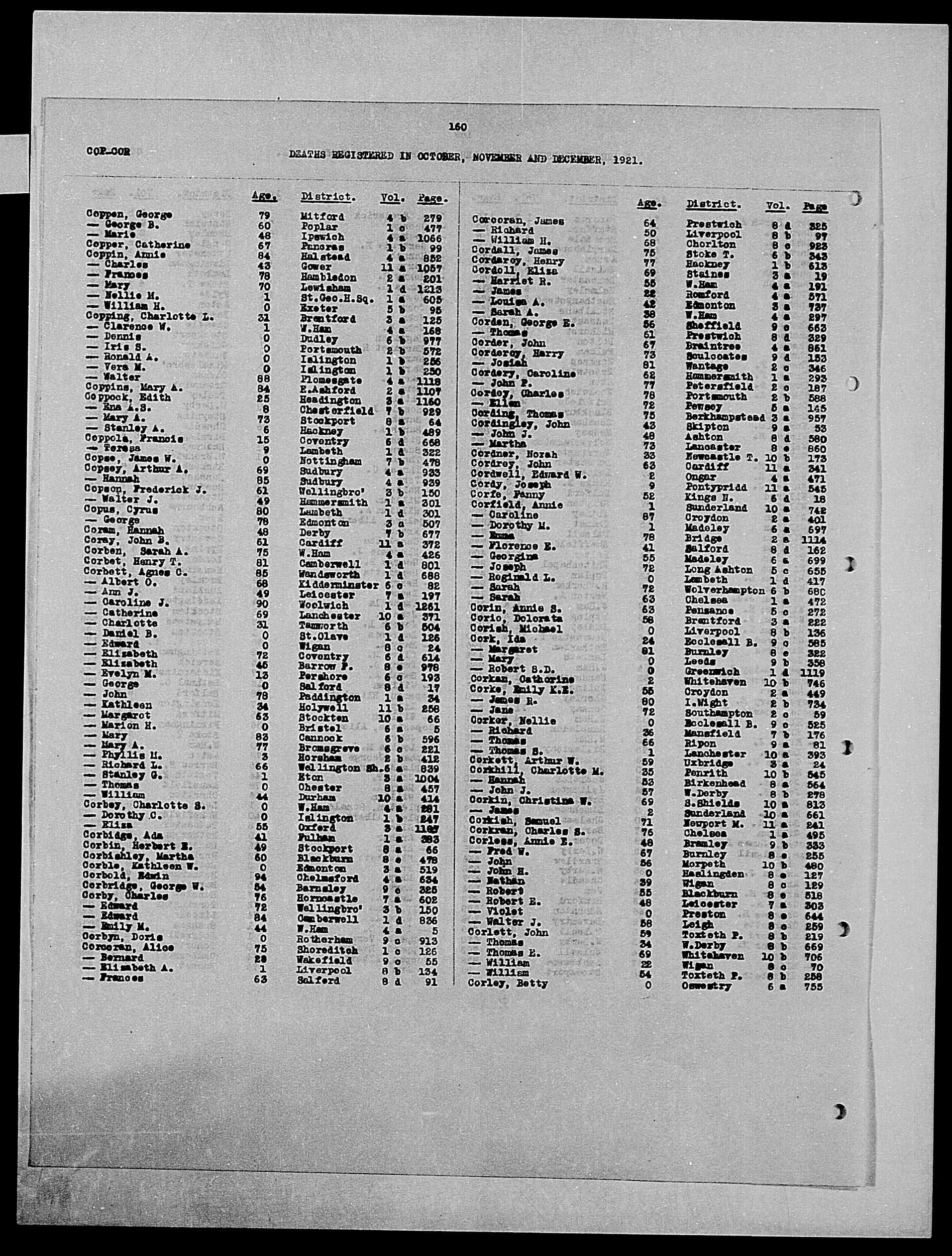 - [S88] GRO Newcastle Tyne, Death Norah Cordner 1921.