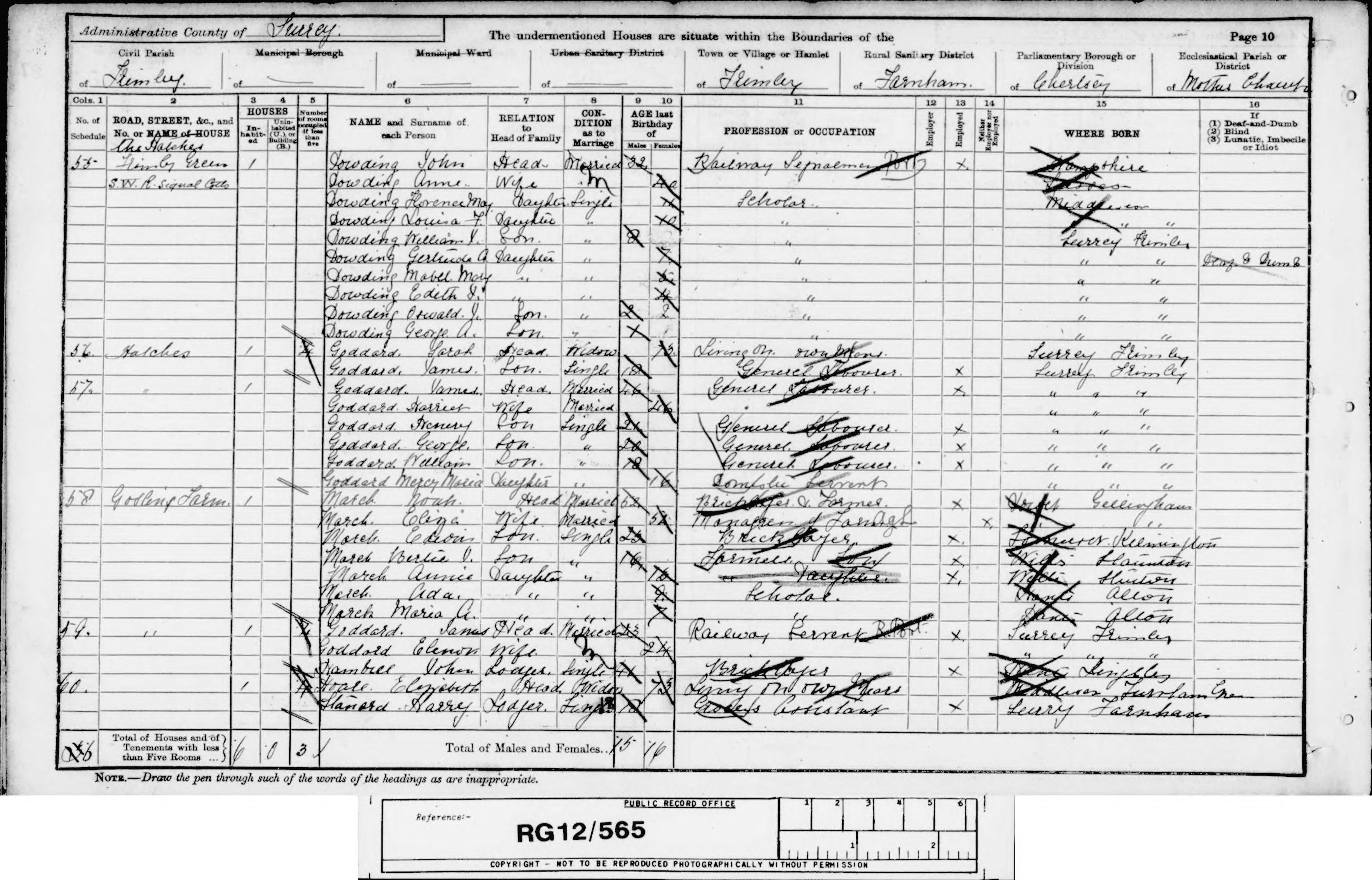 © Findmypast - [S254] 1891 Census Frimley, Camberley,Farnham, Borough of Chertsey, 1891 England, Wales & Scotland Census Transcription