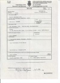 | Death* | 1994 | Mildred Dawson died in 1994 at Southampton, Hampshire, England; Oct-Nov-Dec Qu.4 |
