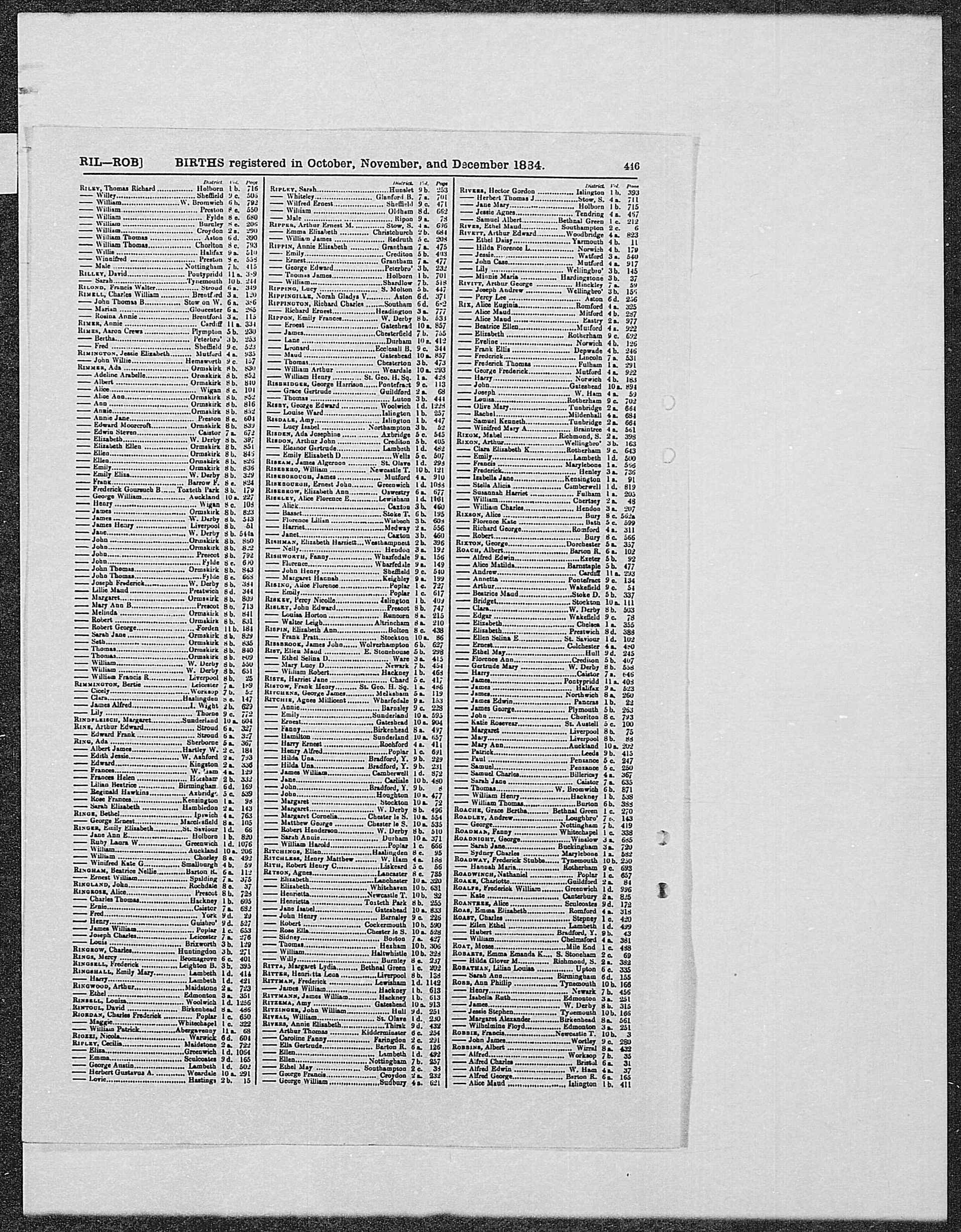 Reg. District: Scarborough Sub District: Scarborough.
