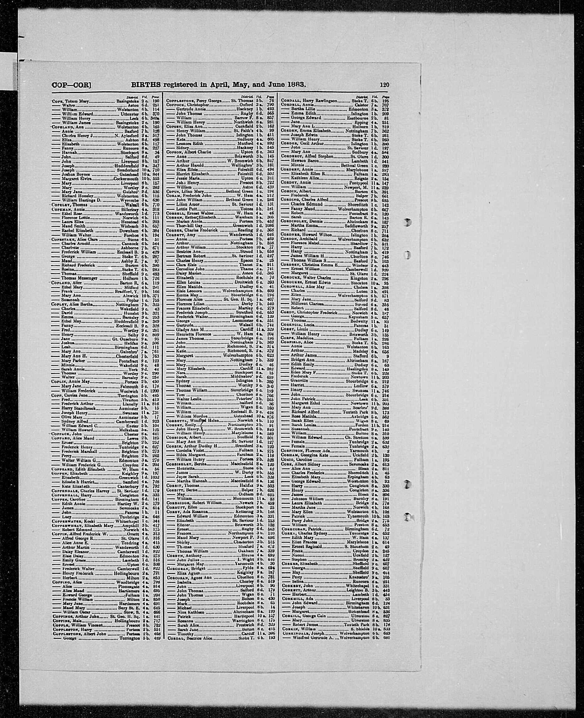 | Birth* | 1883 | Howard Wilton Cordner was born in 1883 at Islington, London; Apr-May-Jun Qu.1,2 |