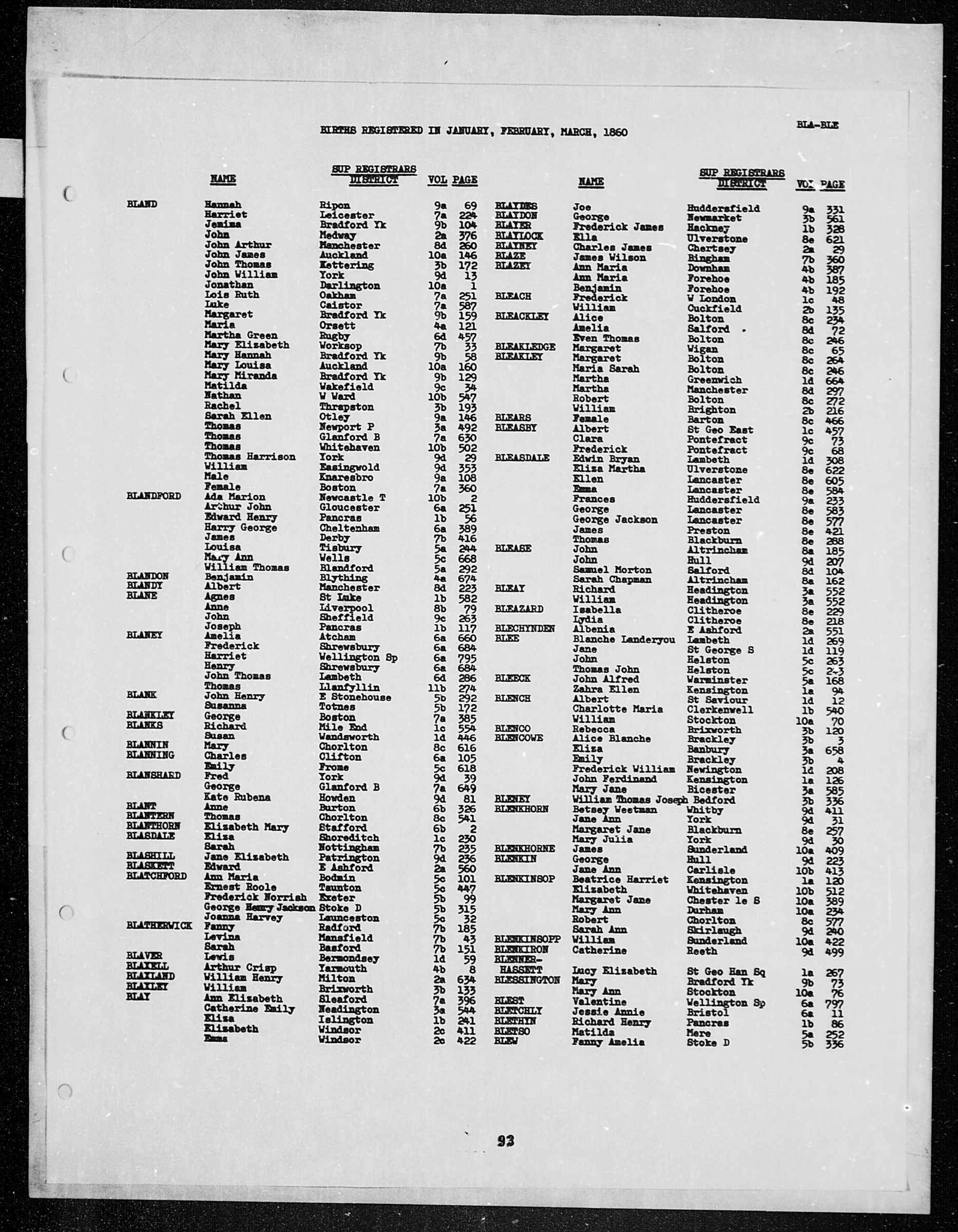 | Birth* | 1860 | Emma Blay was born in 1860 at Windsor, Berkshire, England; Jan Feb Mar Qu.1 |